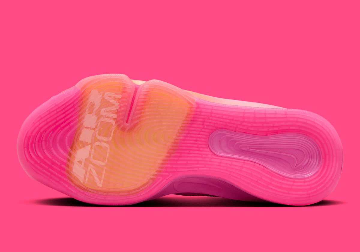 As for the visuals at hand, fuschia sunset tones are the true focus. Two gradients appear; one bone on the midsole that brings orange around the Air units to light pink towards the heel, and one on the upper that carries from the titular shade to deeper “Hyper Grape” up top. The wavy arrangement of the brings an Air Max 95 sort of feel to these basketball shoes, bridging classic Swoosh designs with their latest & greatest tech.