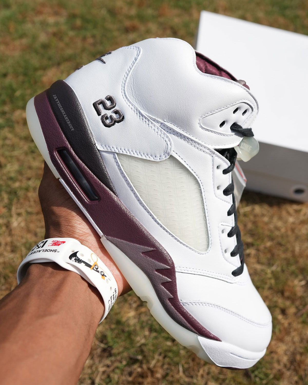 The 35th anniversary of the Air Jordan 5 kicked off with a banger, with the “Black Metallic Reimagineds” spawning considerable demand and some much-needed consumer energy in the first quarter of 2025. As we step further into the year, top-shelf retro releases and collaborations are beginning emerge at a torrid pace. For our purposes, that includes the A Ma Maniére x Air Jordan 5 “Violet Ore,” shown here in the most detailed images we’ve seen to date.