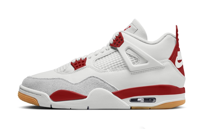 Name: Nike SB x Air Jordan 4 "Varsity Red" (mock-up pictured)Colorway: "Summit White/Varsity Red/Neutral Grey"SKU: DR5415-106MSRP: $225 USDRelease Date: Spring 2025Where to Buy: TBCNike SB and Jordan Brand scored a smash hit with the launch of their first "collaborative" Air Jordan 4 in 2023 — a model that skate-ified Michael Jordan's fourth signature sneaker with enhanced padding, increased grip and rubber accents. Since then, rumors of new colorways have been swirling, and the latest to get the rumor mill going is a "Varsity Red" Nike SB x Air Jordan 4 that's speculated to touch down in spring 2025.At the time of writing, no images of the Nike SB x Air Jordan 4 "Varsity Red" are available (pictured above is a mock-up from zsneakerheadz and Sneaker Files). However, if this reported release follows a similar color scheme as its predecessor it'll boast a base made of white leather and grey suede, with the titular accents arriving via heel tabs, midsoles and eyestays. Of course, a Nike SB hit will replace the standard Nike Air branding on the heel tab as well.It's worth noting that Nike has been pumping up the "cross-brand" collaborations for SB as well. Besides the aforementioned — and potentially forthcoming — Air Jordan 4s, SB has also met Nike Sportswear via a recently leaked Nike SB Air Force 1 Low.Though we're still awaiting official release confirmation, the Nike SB x Air Jordan 4 "Varsity Red" may release during the spring 2025 season and retail for $225 USD. Stay tuned for more info as it's made available.Click here to view full gallery at Hypebeast