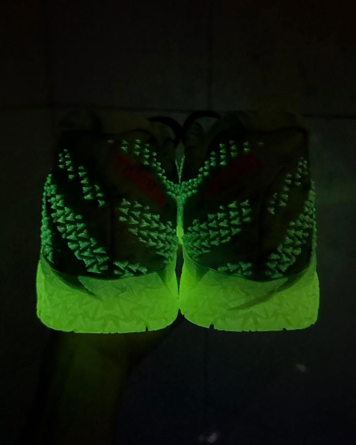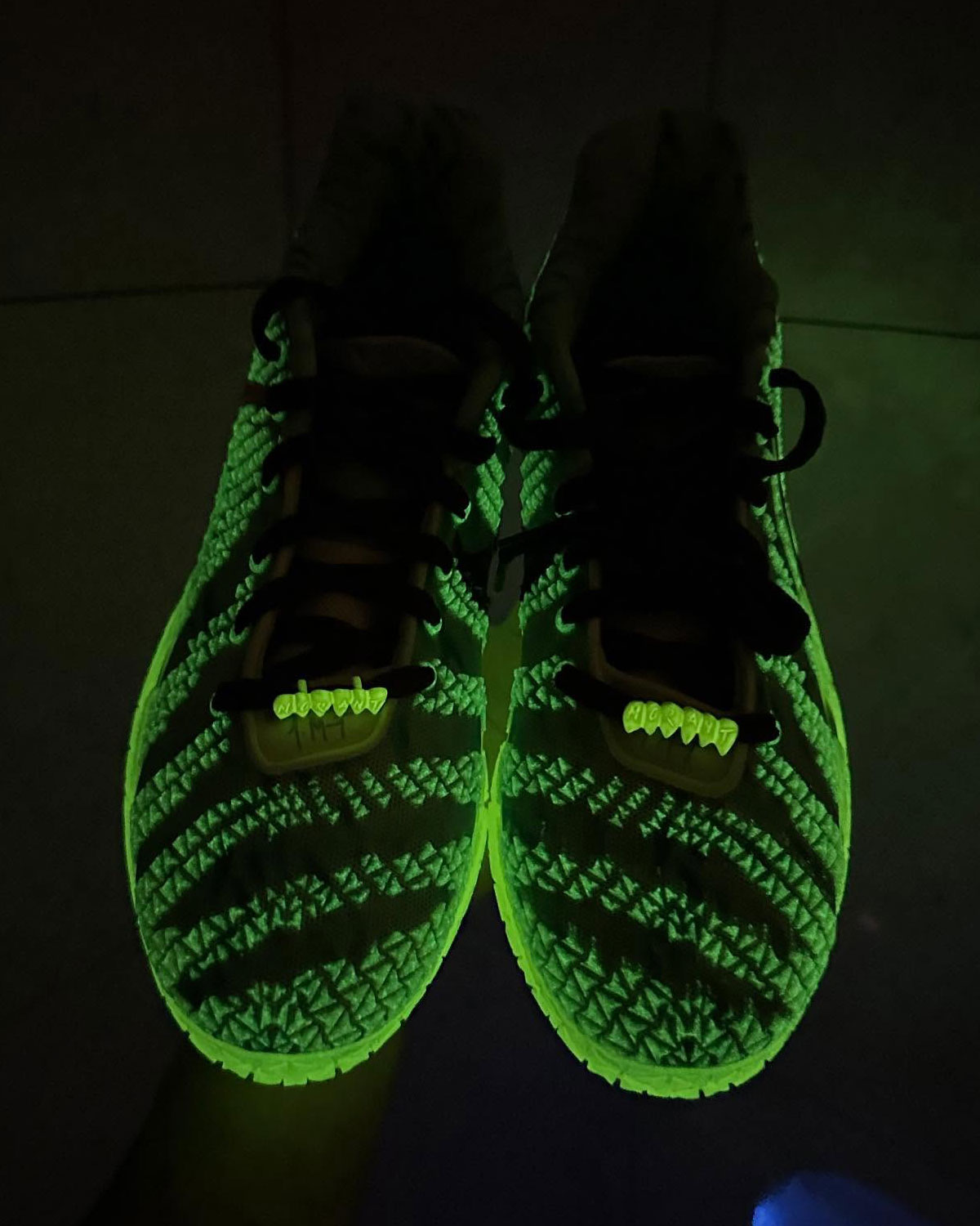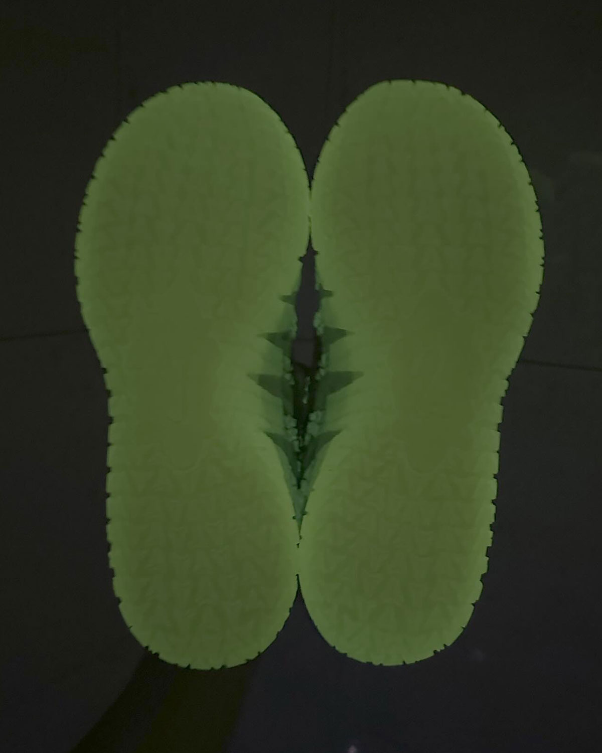 Adding to the spooky, undead element is the glow-in-the-dark aspect, illuminating the rubber outsole once charged up with daylight. The glowing effect appears on the scratch overlay and even the toothy grill-like lace dubrae.