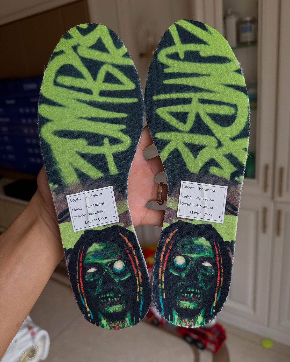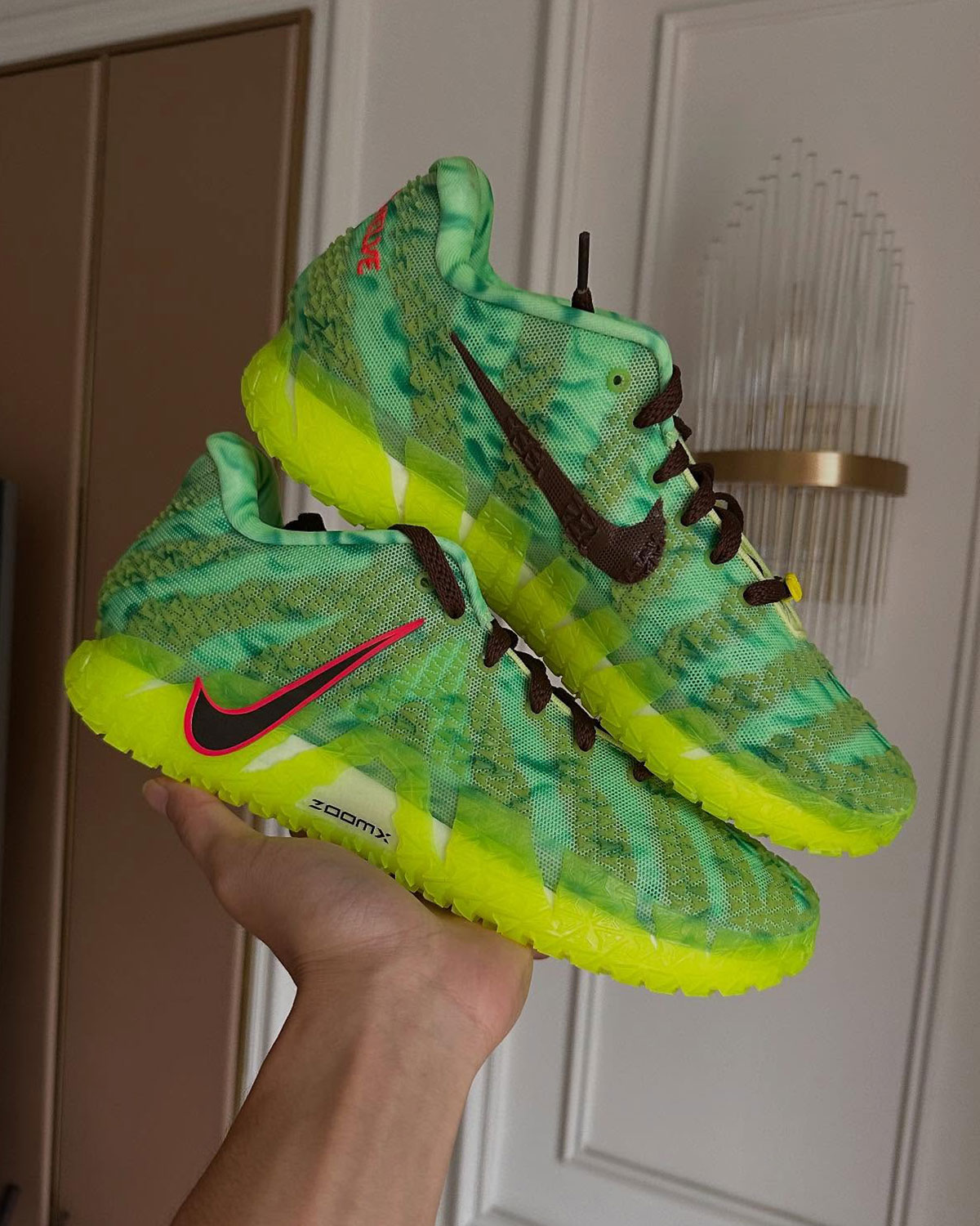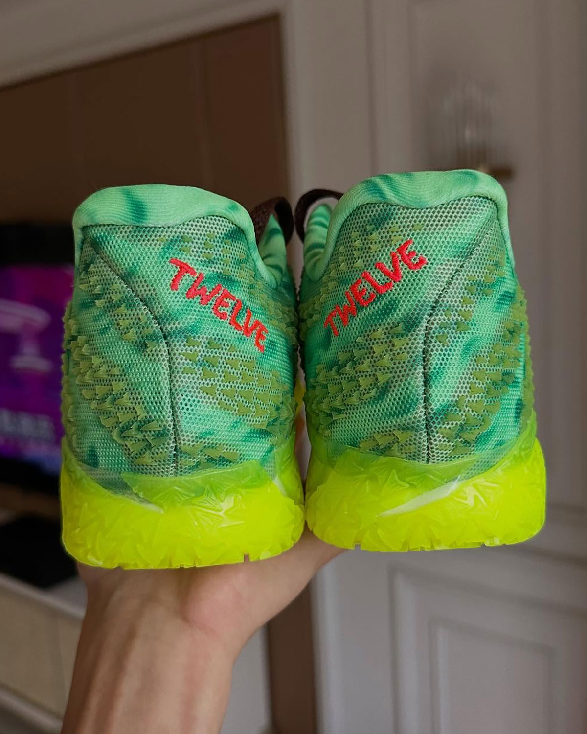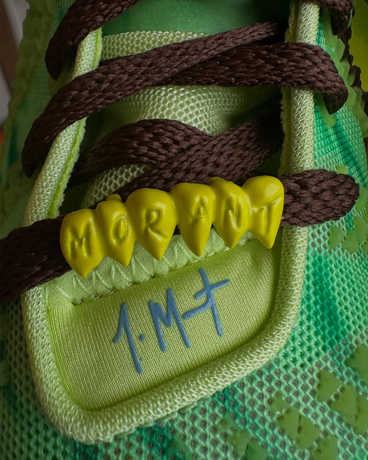 The Nike Ja 3 “Halloween” features a Grinch-like pairing of Light Lemon Twist yellow and Hemp green; the hits of black and bright crimson on the Swoosh only persist those comparisions. The insoles further tell the story with a Zombie Ja Morant appearing on the illustrations, with graffiti-like text establishing the holiday theme.