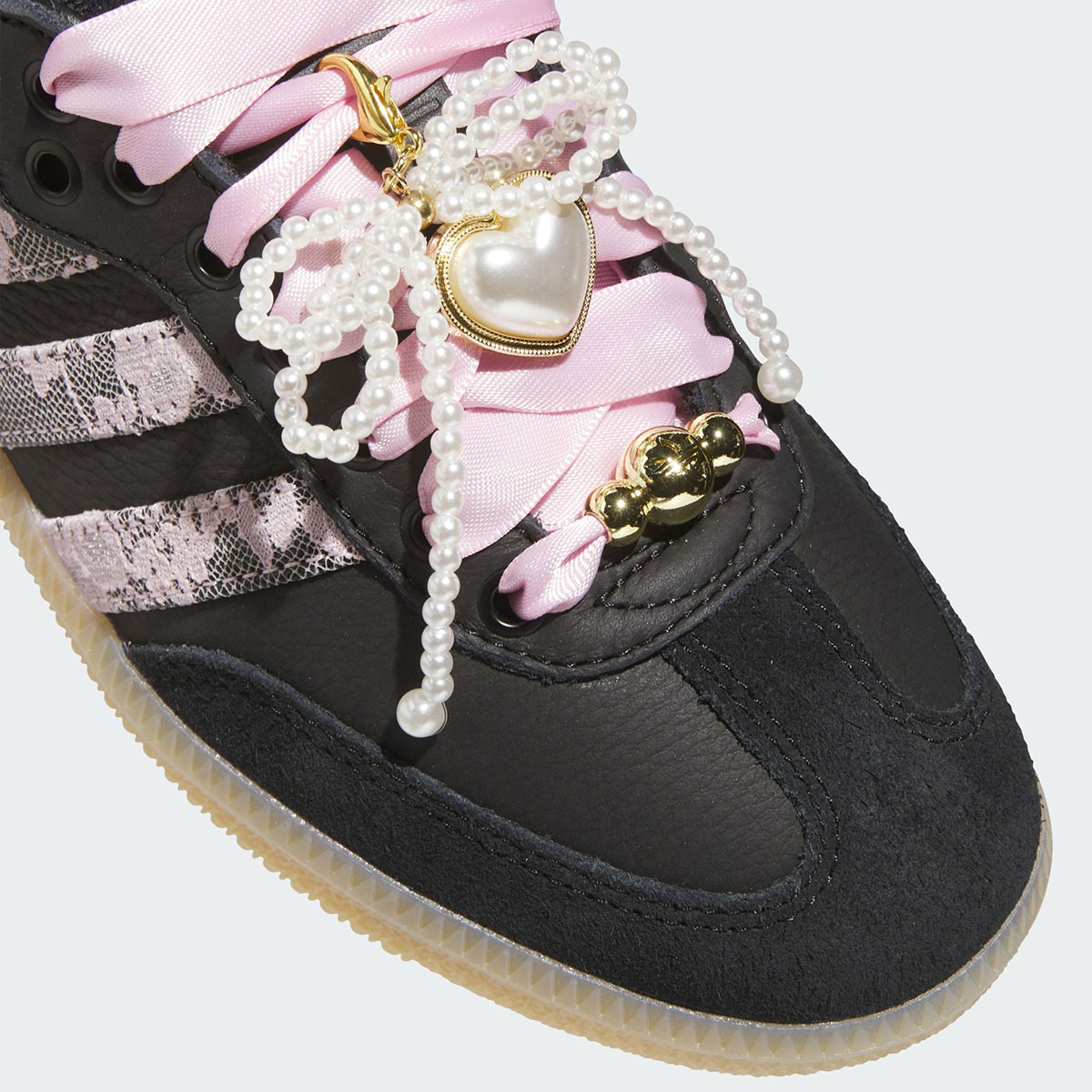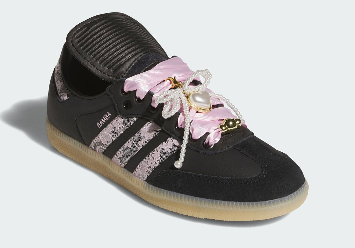 The adidas Samba “Laces and Pearls” releases Holiday 2025 for $120 in women’s sizes. See official images below if you’re moved to cop a pair.