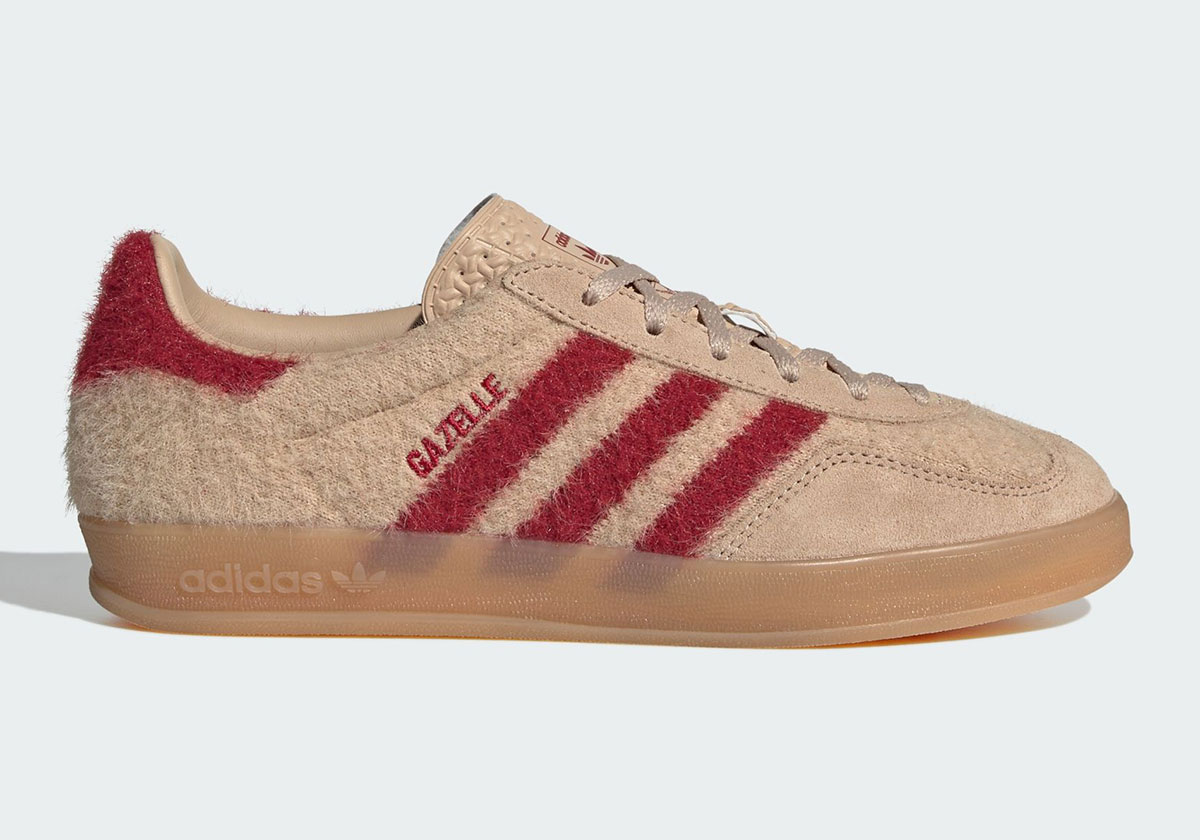 These furry adidas Gazelle Indoor builds drop September 2025 in women’s sizing, retailing for $120.