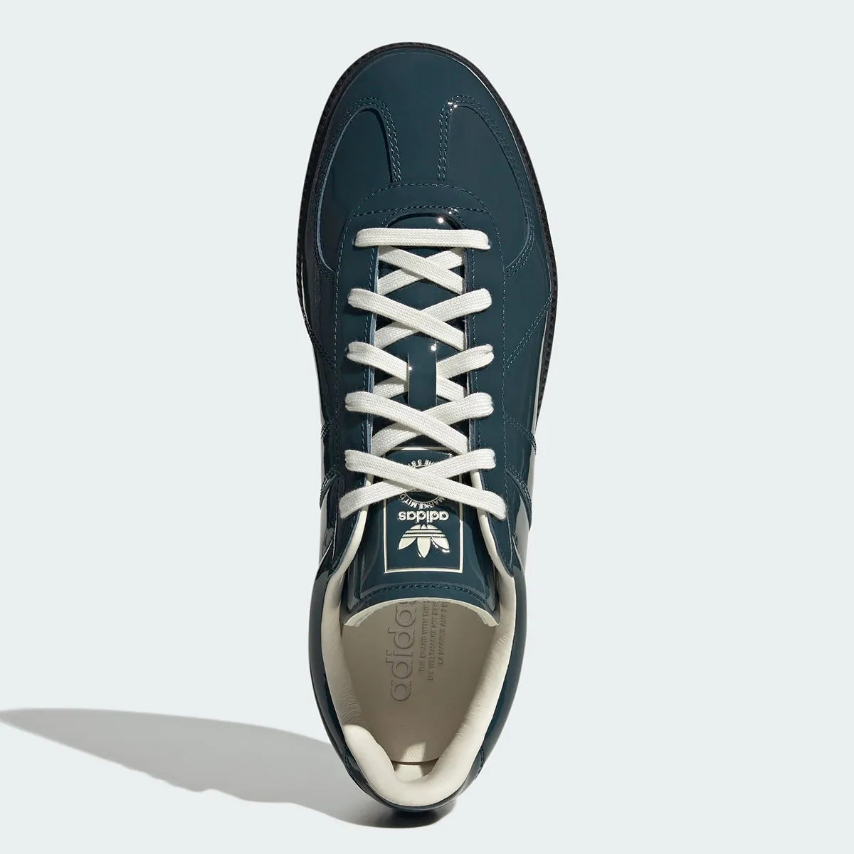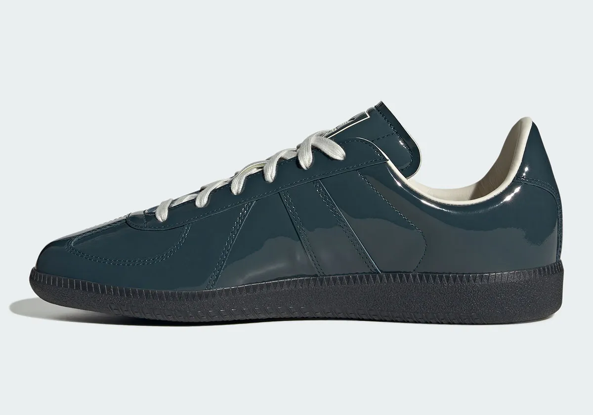 adidas added their latest styles of the BW Army retro trainer to their website this morning, February 20th, 2026. There are two new additions this week, which join to make up a “Patent” leather pack. One pair comes entirely in Core Black, while its partner is dressed in a dark Teal shade with a Carbon midsole. Both pairs come with white laces and white leather inner linings, and are available now for $120.