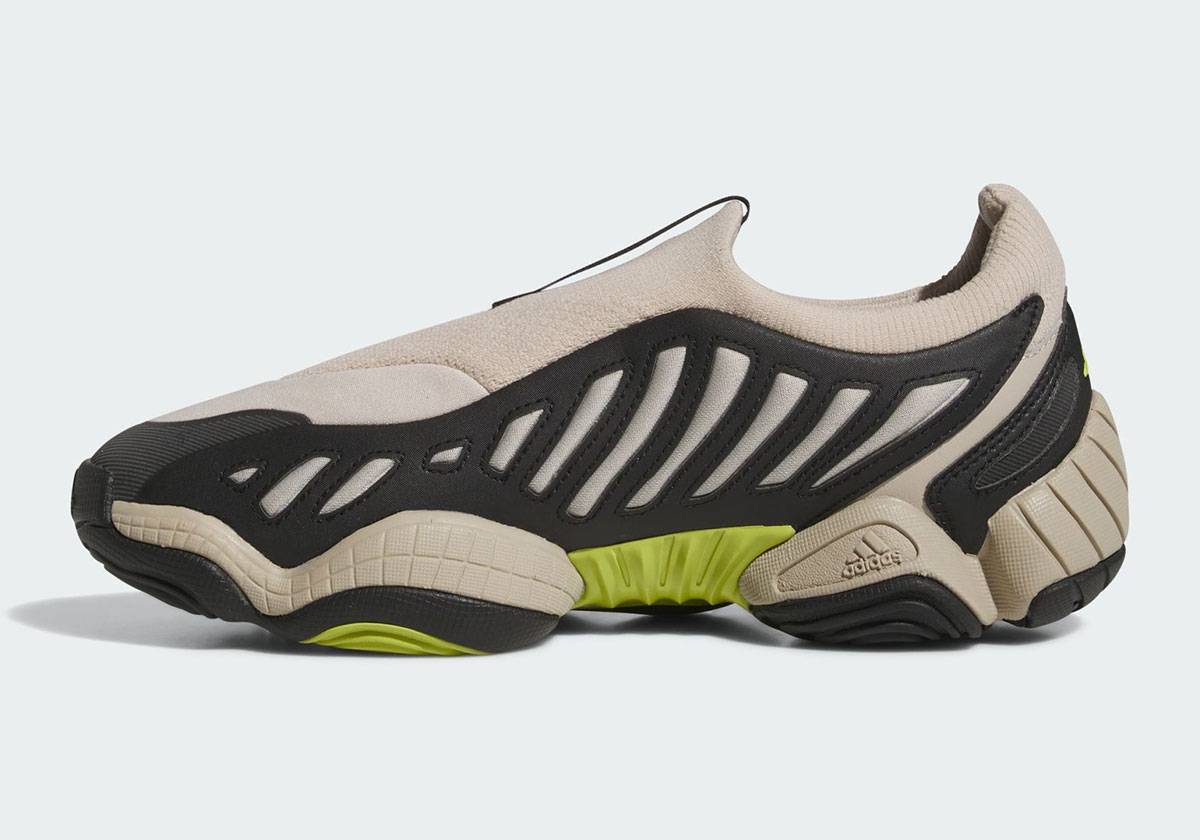 A new retro effort began populating the adidas catalog in about March of this year, and scattered collaborations have been hitting the newswire since around two years earlier. Yet as colder weather looms, it’s that shift that brings the most transformative makeover of the Feet Year Wear silhouette we’ve seen yet. The general contours of the model – including its gridded, wavy sole unit – remain in place, but there’s a ton of changes within those outlines. The most evident is changing a traditional lacing system for a fabric elastic foot entrance, holding up the “slip on” promise included in our title. Additionally, the raised TPU cages on the side now shift into flush leather, wearing cut-outs in the space between to create that same impact. Naturally, the same “Triple Black” aesthetics that have graced the parent model make an appearance here, but a more experimental beige/black/neon green is also on tap to help bring this remodel to market.