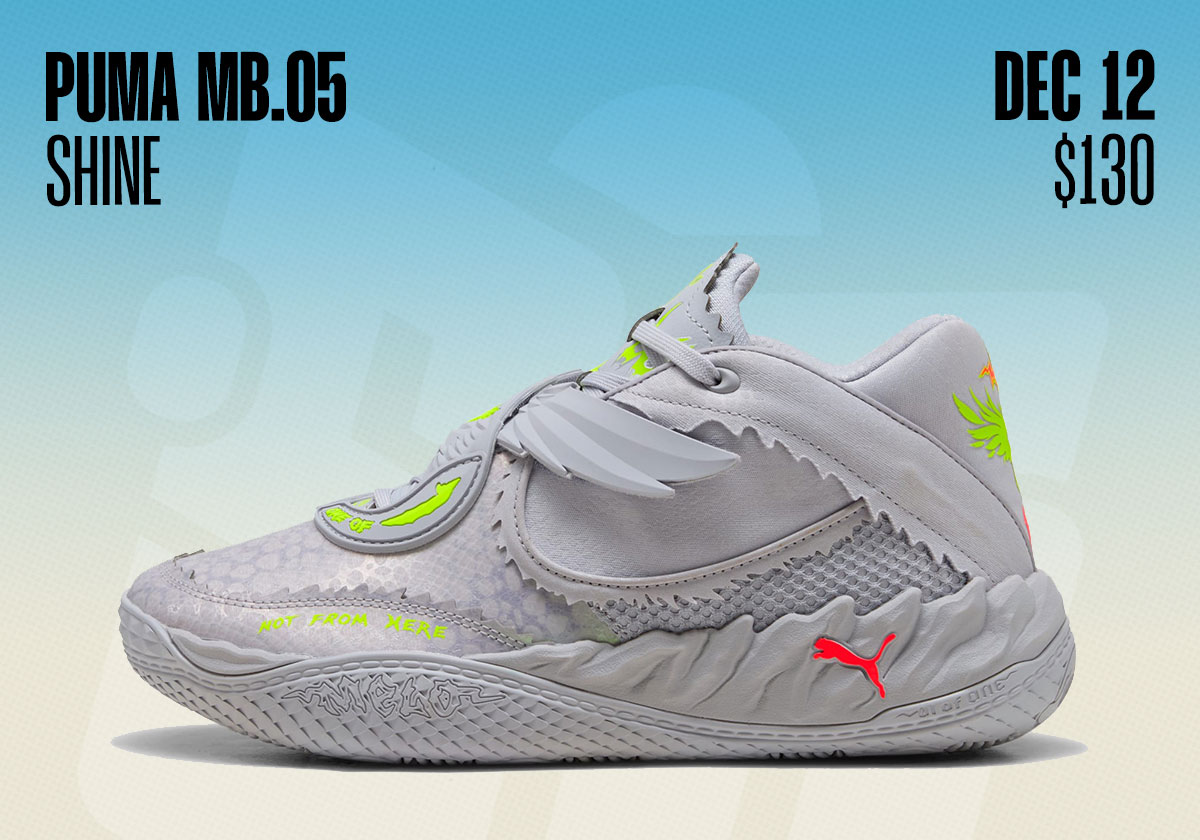 December 12th sees James Whitner’s brand close out his end-of-year capsule with the A Ma Maniere Jordan 4 “Dark Mocha.” Fans of Ken’s or 90’s footwear will no doubt be tracking the Nike Air Max Griffey Max 1 “Freshwater,” while the King remembers his Miami days with the Nike LeBron 23 “Heat Wave.” Hoops remains in focus for our close, as the PUMA MB.05 “Shine” and Jordan Tatum 4 “Pinksicle.”