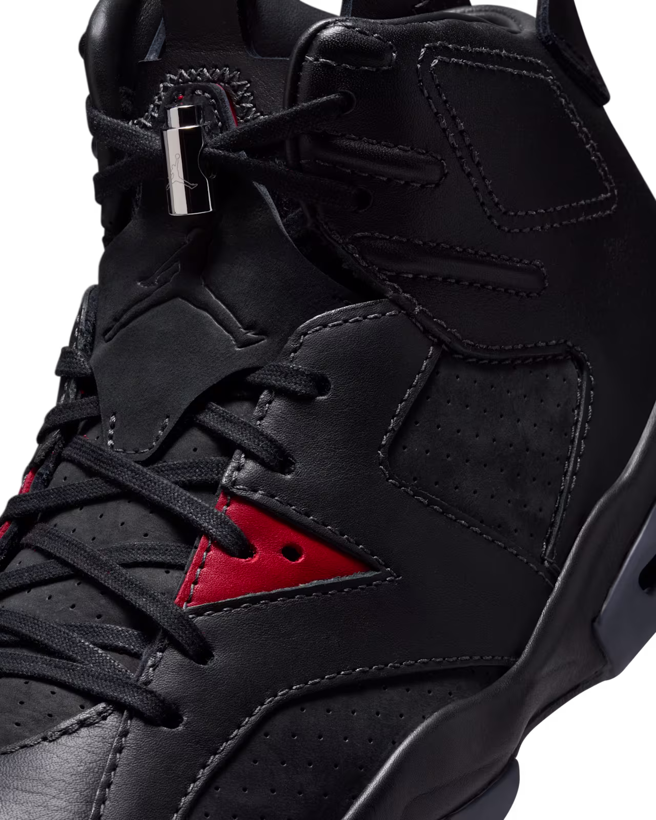 UPDATE 1/23/26: The BIN 23 edition Air Jordan 6 is now expected to release on February 14th, 2026 online at Nike.com. Photos of an early pair are finally here, giving us a better look at the “Off-Noir” color scheme with red accents. Pairs will likely be very limited, and pricing is expected to be set around $355.