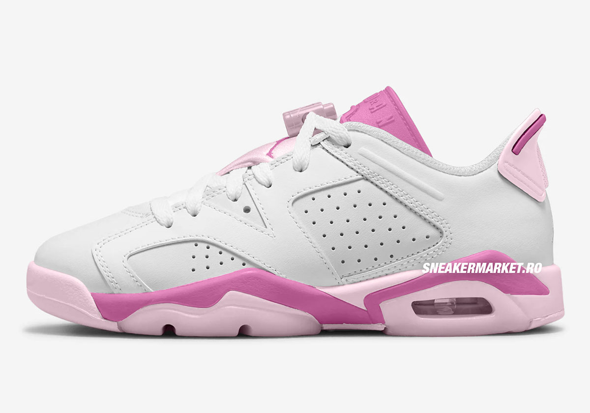 Joining the Jordan 6 “Reverse Infrared” and Jordan 6 “Cap & Gown” among known 2026 drops is a low-top release for kids, tipped off by Sneaker Market Romania. The sneaker will feature a palette of “White/China Rose/Pink Foam,” although the exact materials and color blocking remain to be seen. Based on past AJ6 releases, the speculative mockup below provides a solid idea of what to expect.