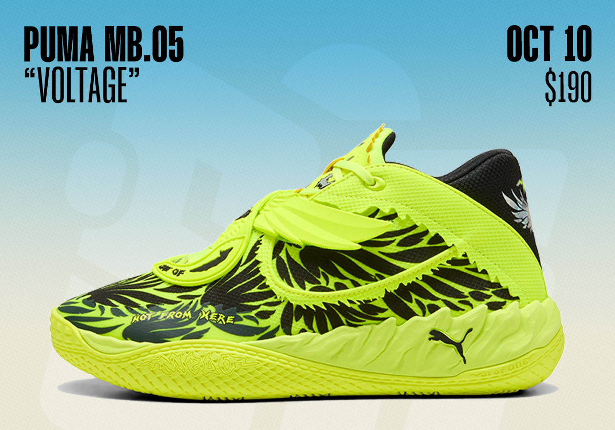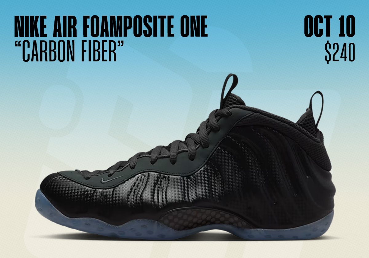 October 10th marks another milestone in the AM95 celebration with the Air Max 95 “Solar Red” and a hardy one in the Foamposite revival: the Nike Air Foamposite One “Carbon Fiber.” If you’re instead interest in the collab slate, you’ll get it with the WTAPS New Balance 2010 and the Song For The Mute adidas, drawing in on the Taekwondo and adiZero PR. More hoops rounds out the day: the debut of the Jordan Tatum 4 “St. Louis” and continuing LaMelo’s latest via the PUMA MB.05 “Voltage.”