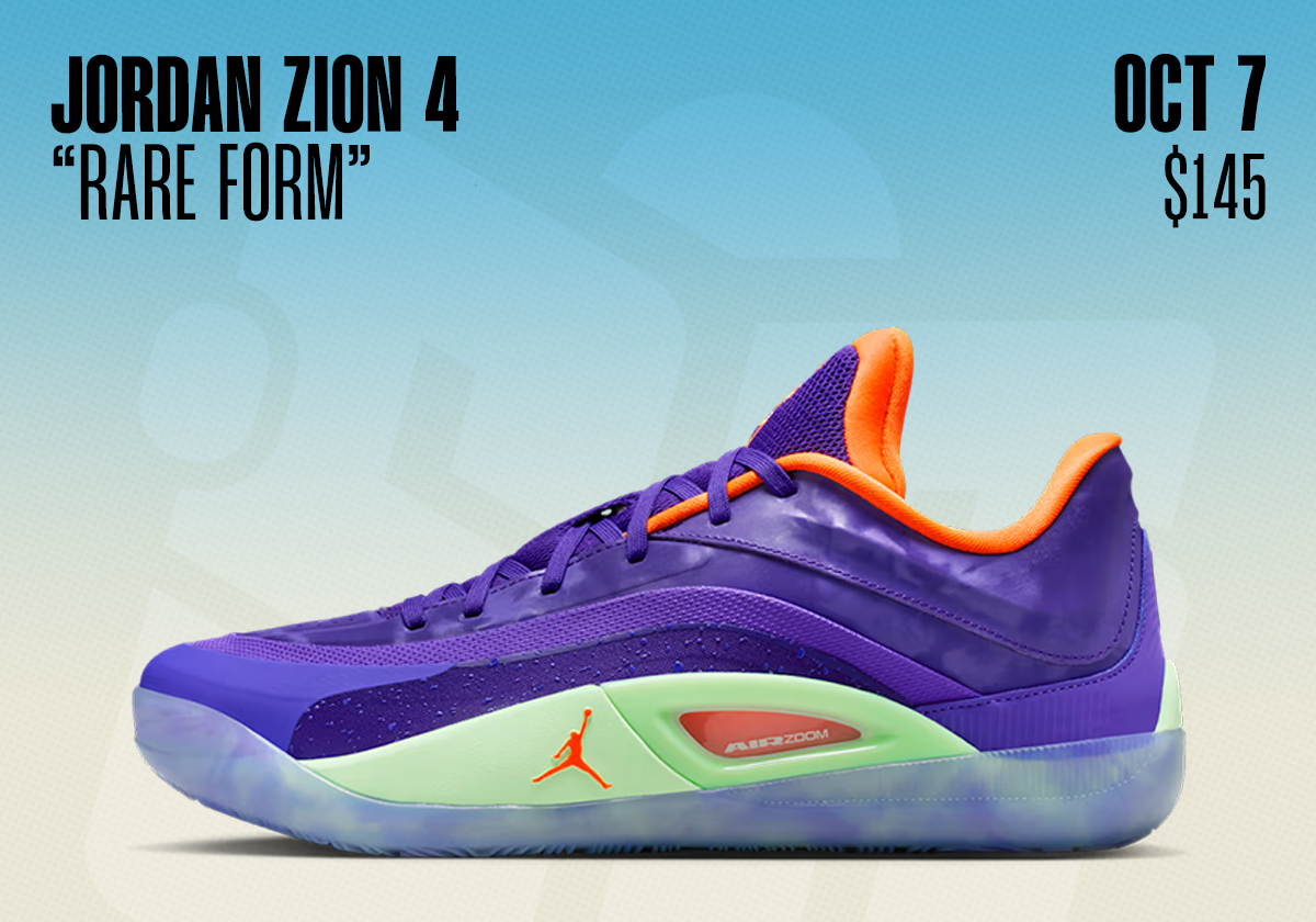 October 7th begins with one of the most storied traditions in hoops shoes, as the Nike KD 18 “Aunt Pearl” adds another stone to Durant’s commemorative path. The Nike SB Dunk Low Persian Violet is up next before a mix of Jumpman basketball shoes closes us out: Doncic’s Jordan Luka .77 “White Cement” and Luka 77 “Hcerka” and Williamson’s Jordan Zion 4 “Rare Form.”