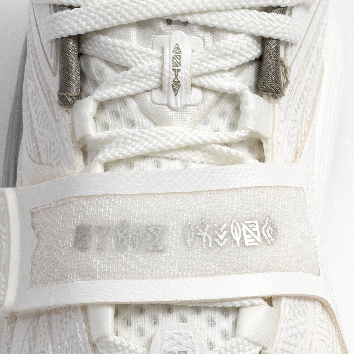 Part of what makes these two pairs so compelling is the shoes that preceded them, editions like “Kaleidoscope” or “Garden State” showcasing the flashy, eccentric home base of the ANTA KAI 1. The geometric patterns of the engineered mesh and the hieroglyphic-like typeface that prints Irving’s name on the midfoot strap remain, but the tonal palettes imbue a far sleeker profile than we’ve seen before.