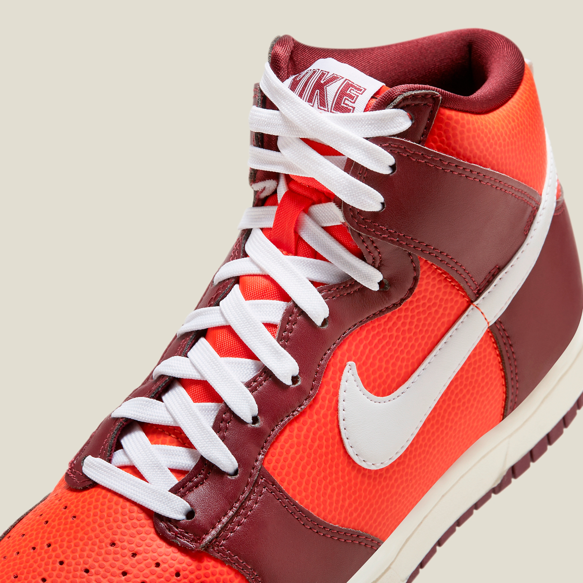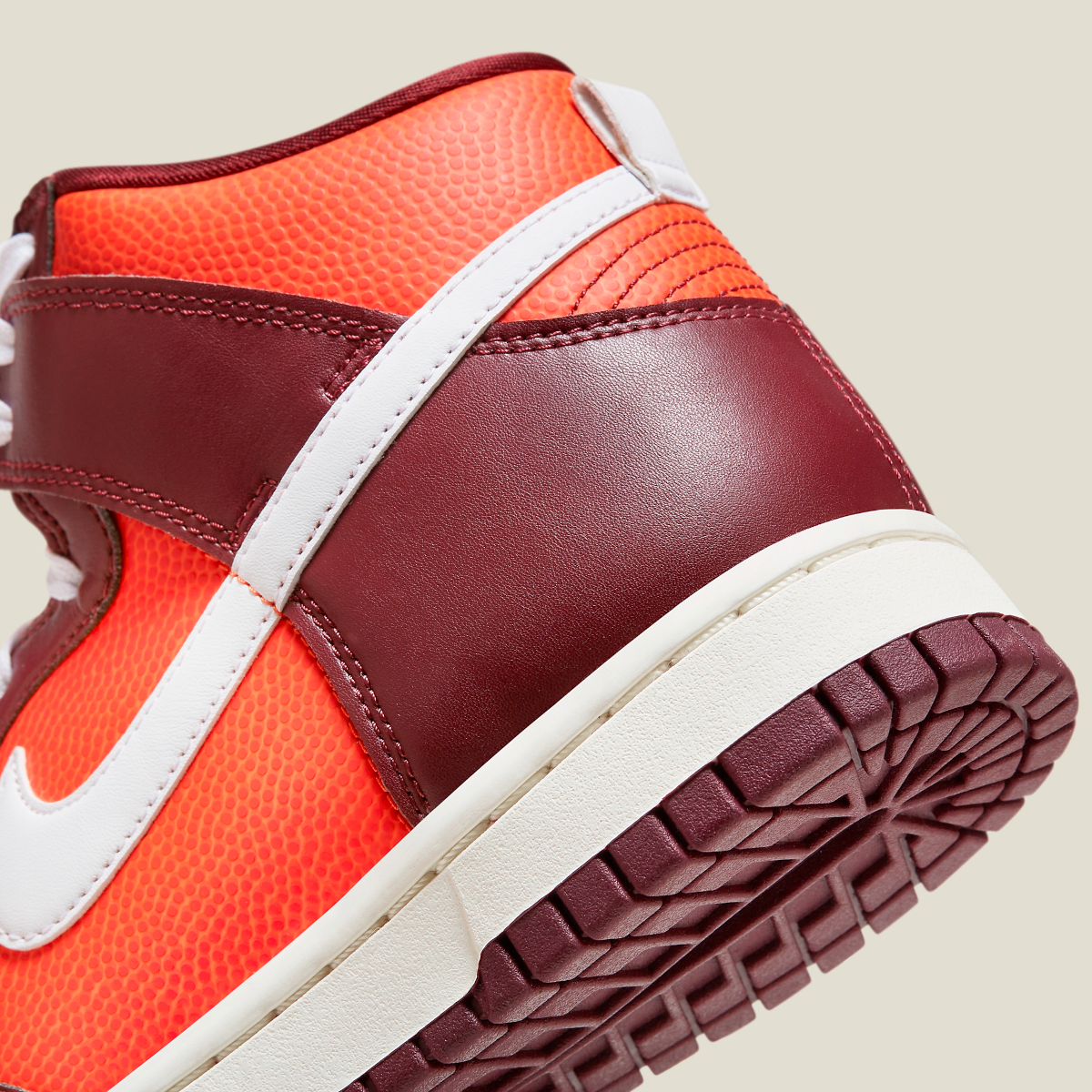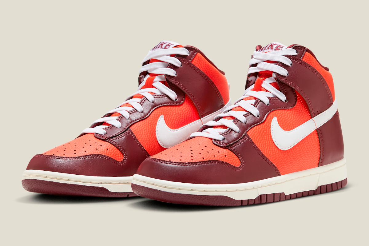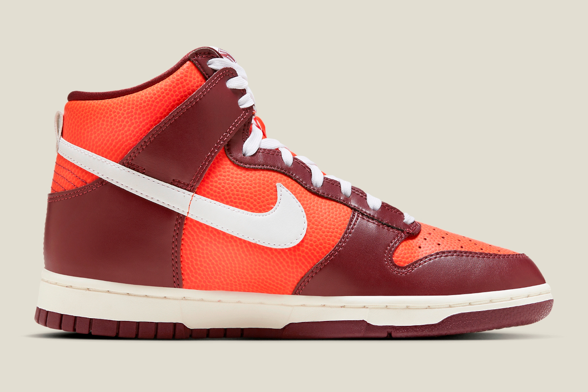 The “Be True To Her School” pack has thus far collected a duo of Air Force 1s and the Air More Uptempo for a range of women’s exclusive varsity-style color blockings. Marking the high-top trim’s first appearance in the all-new cohort, the Dunk High fancies the collection’s presiding pebble grain leather that mimics the textured feel of an indoor basketball. Placating the underlays at the vamp, mid-foot and upper collar, the latter are doused in a titular shade of watermelon that boasts even further clarity next to the burgundy-tinted smooth leather overlays. While a slightly aged cream tint consumes the midsole, the profile swooshes, laces and the various varsity-inspired Nike logos assume a contrasting crisp white finish.
