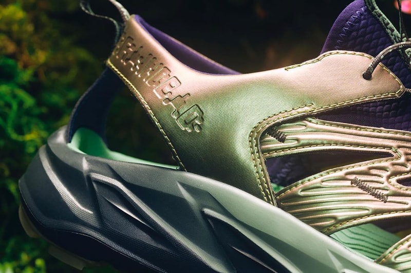 Base layers of this outdoor-centric silhouette are structured with a ventilated build and are predominantly dripped out with iridescent exteriors atop the side cages. Mesh tongues are fitted with a deep purple filling and come accessorized with all-over Brain Dead branding down the throat banner. An extra shoutout to the streetwear company comes in a debossed robotic font along the heels. Beneath all of that, the midsoles are presented with a two-toned motif and feature gradient green accents and fin-shaped molds that are dyed in all-black. Rounding off its look is a trail-ready outsole that's done up with black and kelp-esque panels.