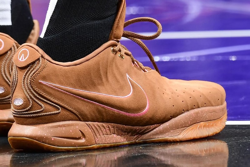 During last night's NBA In-Season Tournament game between the Utah Jazz and the Los Angeles Lakers, LeBron James became the first player in NBA history to score 39,000 points. It was a great night all around for King James — apart from setting another milestone, his Lakers pummeled the Jazz 131-99 to advance to the tournament's quarterfinals and he even sported a special pair of shoes for the occasion. Those special shoes? A friends-and-family iteration of the UNKNWN x Nike LeBron 21.A follow-up to the UNKNWN x LeBron 20 "Message in a Bottle" that was released earlier this year, this new take on the LeBron 21 offers up an earthy brown color scheme with bright contrast provided by pink Swoosh trim and speckled midsoles. There's even a UNKNWN badge embroidered on the heel for a little extra branded flair. Performance-wise it appears to feature the standard LeBron 21 setup, namely a Cushlon midsole with a super-sized, bottom-loaded Zoom Air unit in the heel and a Zoom Turbo unit in the forefoot.Currently, no information on the shoe's colorway inspiration has been revealed. It's unlikely to see a retail release as well, as it was created for LeBron and his inner circle. However, King James fans may want keep an eye on UNKNWN regardless, as the store may well have another LeBron 21 collaboration in the works.For more news on the latest and greatest sneakers be sure to check out Hypebeast's weekly Best Footwear Drops roundup.Click here to view full gallery at Hypebeast