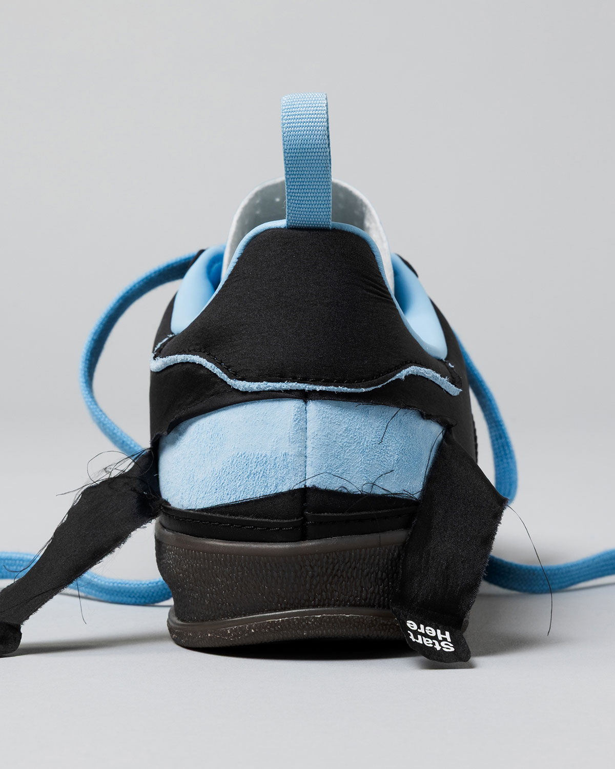 The “Diamond in the Rough” theme comes to life on a navy Gazelle Indoor featuring ripstop tearaway uppers that reveal a layer of powder blue suede underneath. The denim jeans and New York Yankees connections are obvious, but the powder blue shade also nods to Bronx hip-hop fashion in the ’90s (think bootleg Louis Vuitton). The tearaway layer includes a heel tag that reads “start here,” paired with a permanent pull tab just above. Navy, white, and powder blue laces with silver tips are included, while the tongue branding carries a lenticular finish that shimmers like diamonds. As seen on the inner lining, the sneaker is limited to just 800 units – each with stitched numbering.