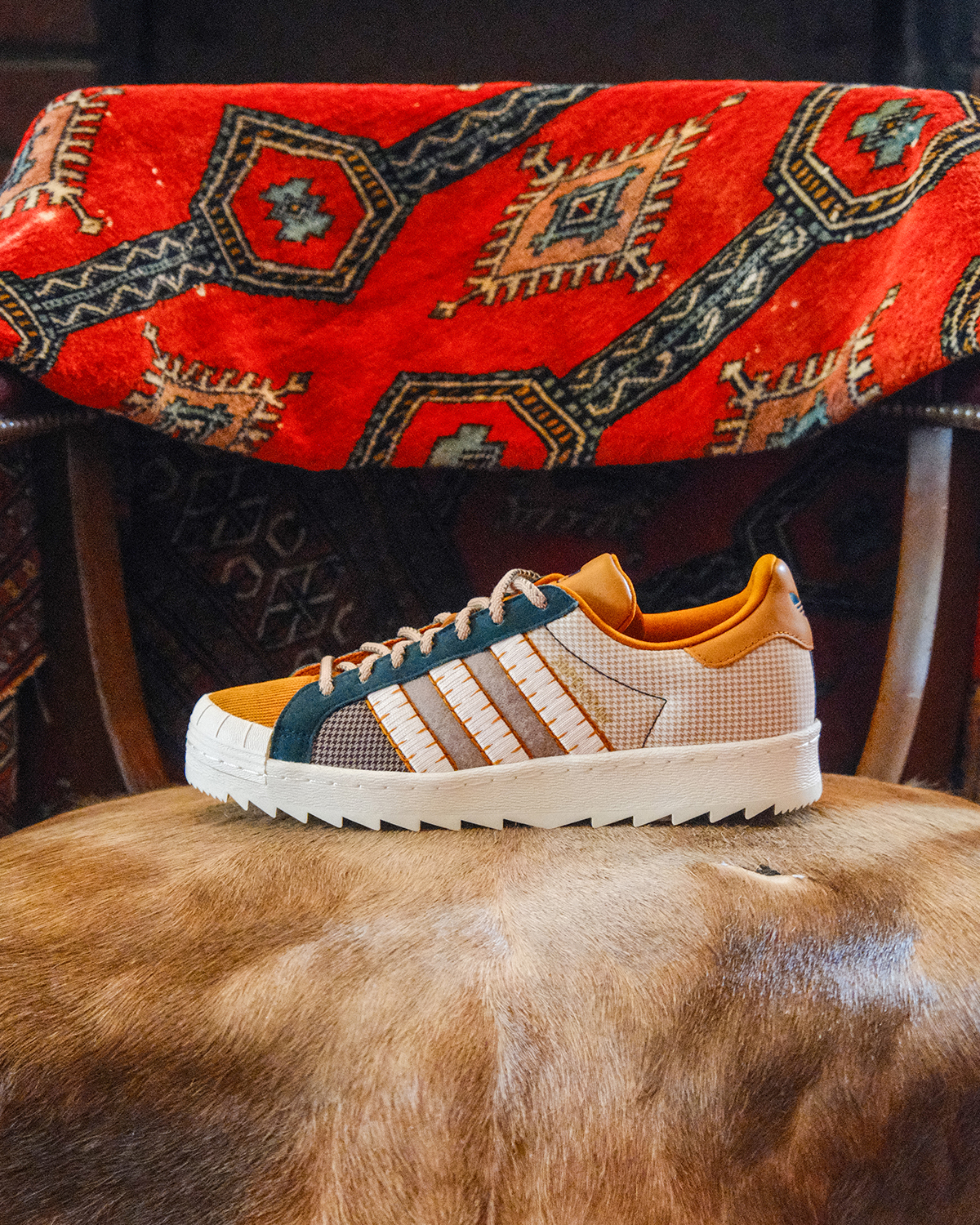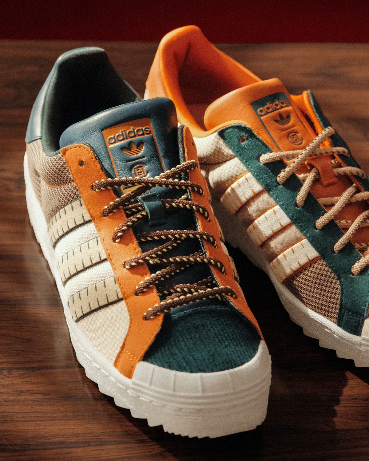 A tacit signature shoe in Chen’s canon, the mesh build of the Superstar has been utilized for airy editions all year, but as the leaves begin to change, it makes a suitable canvas for this heavier application. Propelled by the Chinese concept of “Baijia Bu,” the primary draw of this shoe is how it shifts through texture and tone. Though the coloring varies from shoe to shoe, the materiality on either remains constant, blending houndstooth knit fabric in the rear, corduroy toes, tumbled leather Three Stripes detailing, and suede eye-stays. More than just an intriguing narrative thread, the shoe is reportedly comprised of discarded fabric from the process of creating the past year’s CLOT x adidas product — a tangible culmination of the sturdy partners’ expansive shared history.