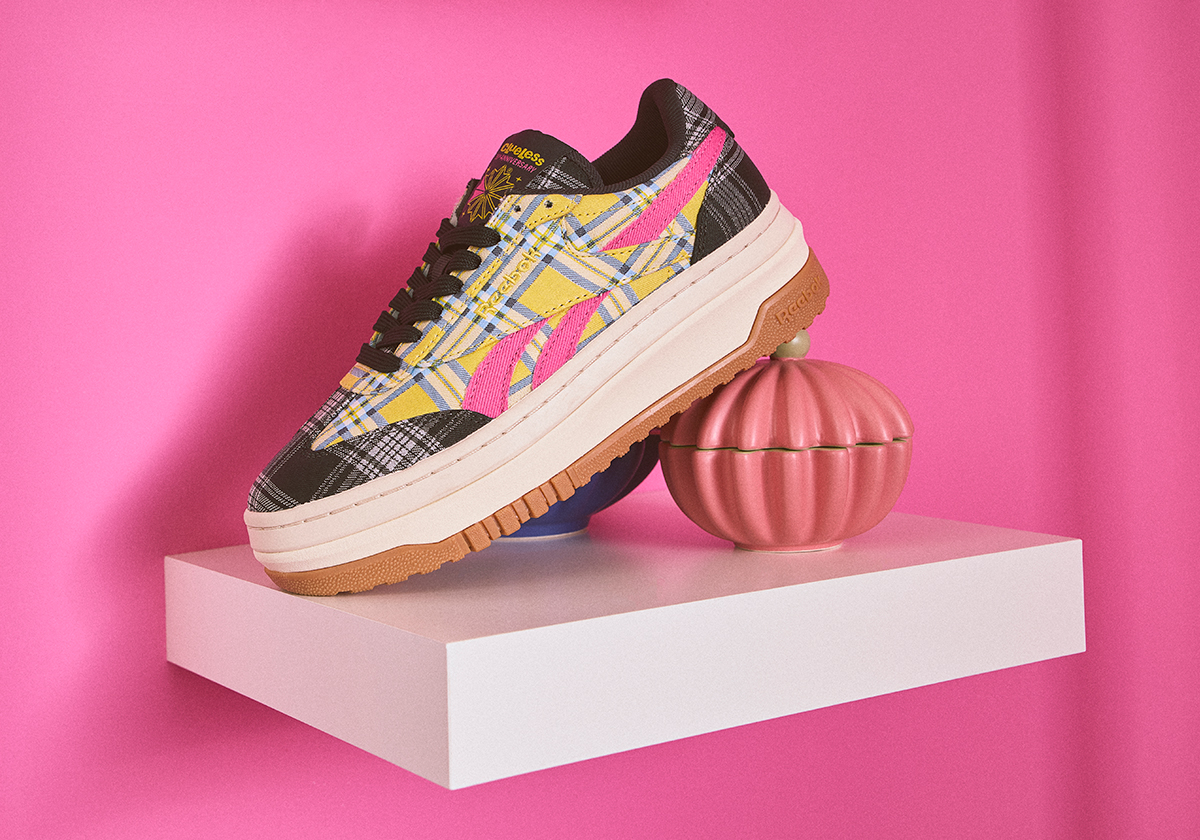 Here we have two sneakers inspired by some of the outfits worn by the movie’s characters. Delivering ’90s nostalgia for days, the platformed Reebok Campio Extra steals the show with a design inspired by Cher and Dionne’s plaid outfits. A black and white pattern appears on the toe and heel, while green/blue fabric featuring pink detailing dominates the quarter.