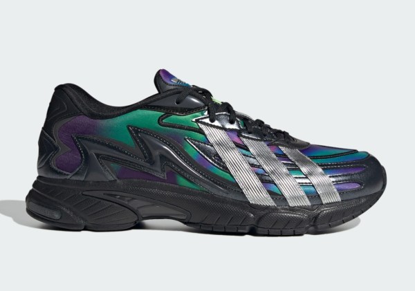 Based on the performance-oriented Orketro, the latest sneaker from the Three Stripes features a number of overlays across its upper. Porous mesh is replaced with a lightweight fabric construction that takes on an iridescent “Solar Green” finish. “Core Black” and “Matte Silver” tones also appear throughout the upper, creating a muted, but eye-catching arrangement on the retro-inspired shoe. Underfoot, adiPRENE cushioning favors a pitch-dark look that allows for the hits of purple, blue, and green that animate the upper to revel in the spotlight.