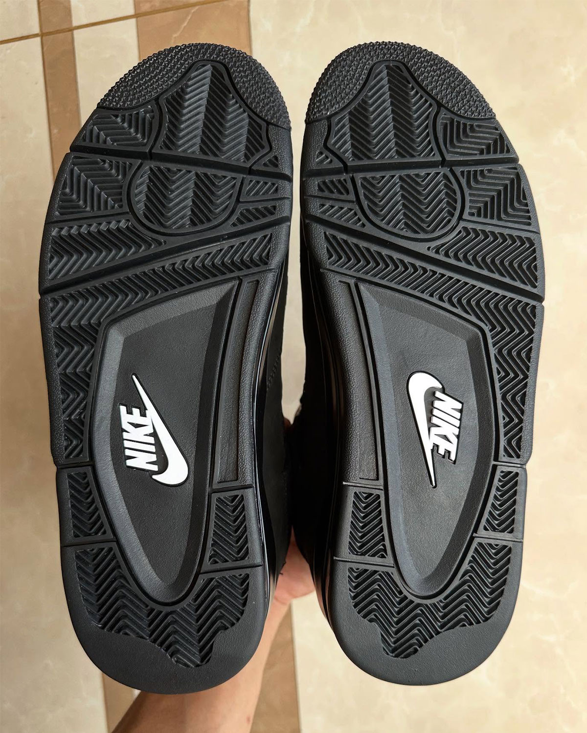 This first detailed look at the Black Cat Jordan 4s may not reveal much in terms of shock and surprise, but they’re still a sight to see given just how in-demand this shoe continues to be. Again, the shoes feature an all-black uper with touches of dark grey on the Jumpman logo on the tongue. Nike Air is used for the first time on the heel, while the same Nike logo on the bottoms are painted in white.