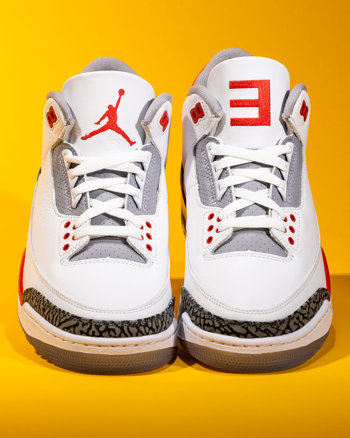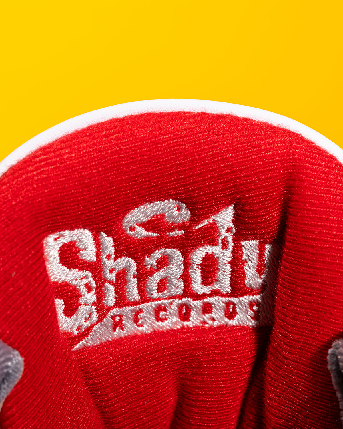 While clearly a riff on the storied “Fire Red,” the Eminem Air Jordan 3 becomes a legendary shoe in its finer details, sporting a variety of Em-centric hits in the place of the usual Jordan iconography. Begin with the alternating logos on the tongue, swapping between the usual Jumpman and the backward E that’s been a Marshall Mathers trademark since… well, the Marshall Mathers LP. Fitting given the Super Bowl halftime show’s career retrospective, he throws back to his debut with the “Hi My Name Is” backtabs, while the tongue interiors harken to his record exec career, sporting “Shady Records” spell-out text on the left shoe and its Jason Mask emblem on the right.