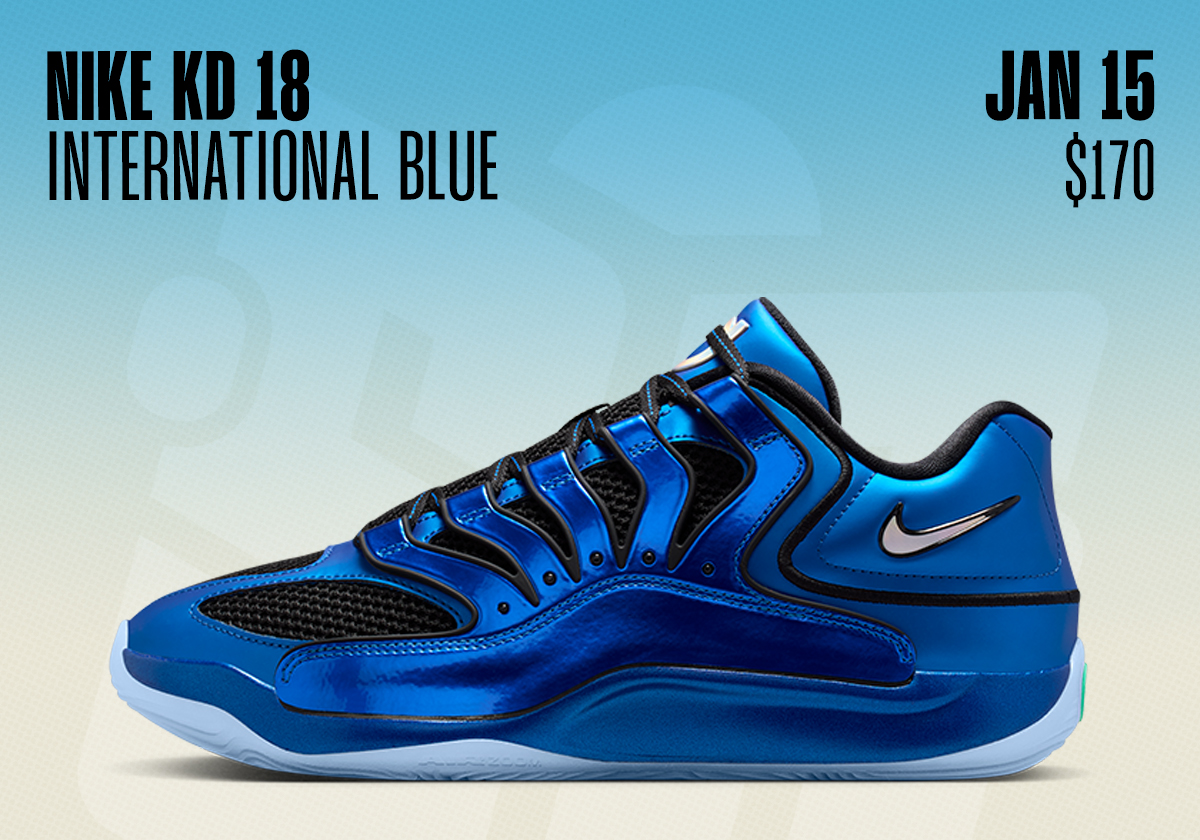 January 15th has two Beaverton ballers in focus via the Nike KD 18 “International Blue” and the Jordan Luka 5 “Bred.” If running is more your speed, two fresh version of a teched-out silhouette enter: the Nike Vomero Premium “Sapphire” and Vomero Premium “Bright Crimson.”