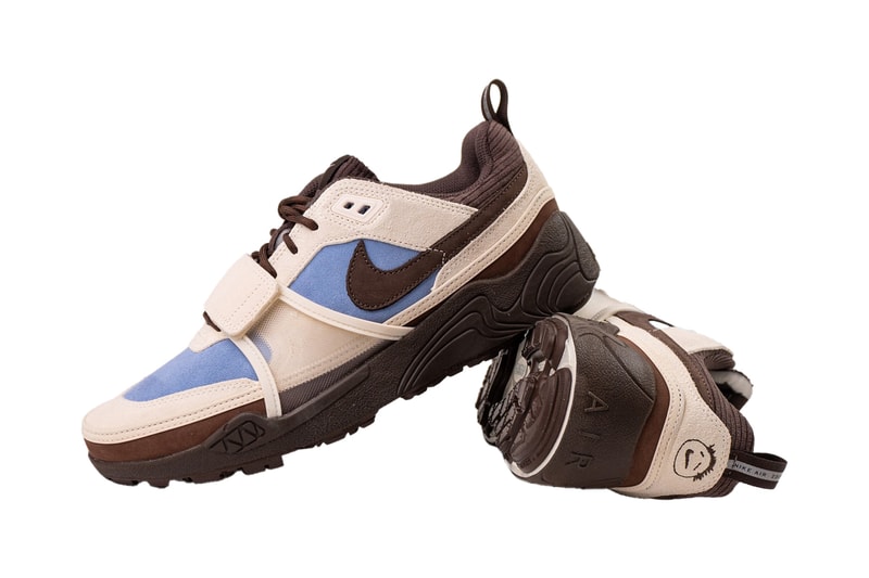 Update: Travis Scott continues to dominate the sneaker space as he not only draws in the masses for his Air Jordan 1 Low OG collabs, but has expanded his reach to include two new signature shoes: the Jordan Jumpman Jack and the Nike Zoom Field Jaxx. Looking closer at the latter, a mash-up of elements from the Zoom Spiridon and the Land Shark baseball cleat, a rumored "Leche Blue" look has finally surfaced. The new colorway sees a blue base accompanied by beige at the overlays while a chocolate brown covers the collar, Swooshes, tongue and sole. Release is expected to go down next spring via Nike SNKRS and select retailers at a starting price of $170. Enjoy the early preview above and review our initial breakdown below for more info.