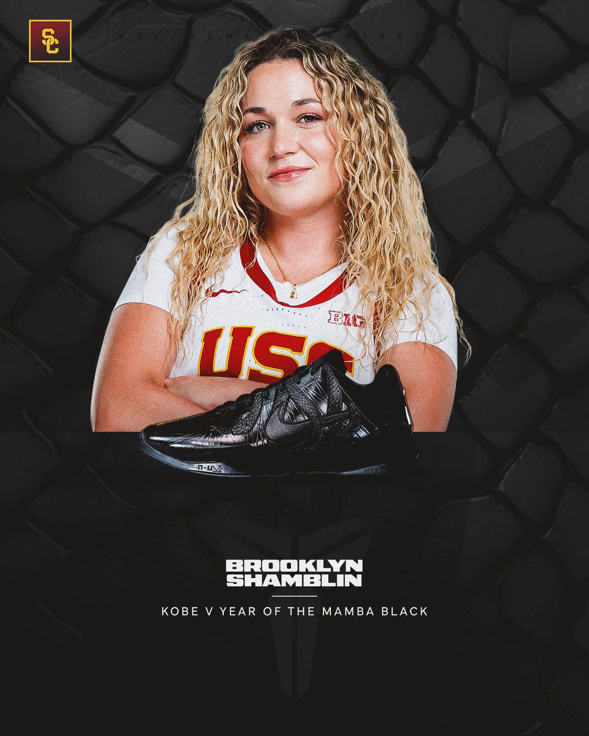Meanwhile on the USC side, the women’s basketball program unleashed insane portraits of each of its athletes and their corresponding pairs. Jazzy Davidson is rocking the Kobe 4 “CHBL”, Kara Dunn sports the Kobe 9 EM “Mambacita”, Londyn Jones in the Kobe 9 Elite “Moonwalker”, and more.