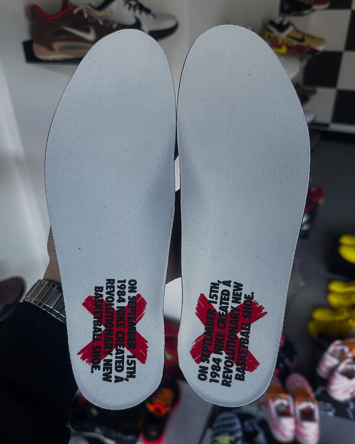 But the Jumpman isn’t finished just yet. New images posted by sneaker leaker and reseller @yyt_snkrs show an Air Jordan 1 Low OG “Banned” sample expected to drop in 2026. The core design follows the classic “Bred” formula with multiple textures of black and Varsity Red leather. The “Banned” theme comes to life through X’s placed where the Jordan Wings logo typically sits on the backtab. The insoles read, “On September 15th, 1984, Nike created a revolutionary new basketball shoe,” echoing the narration from the original “banned” commercial. The sockliner features the date 10.18.84, the day the league officially barred MJ from wearing the black and red Air Jordan 1.
