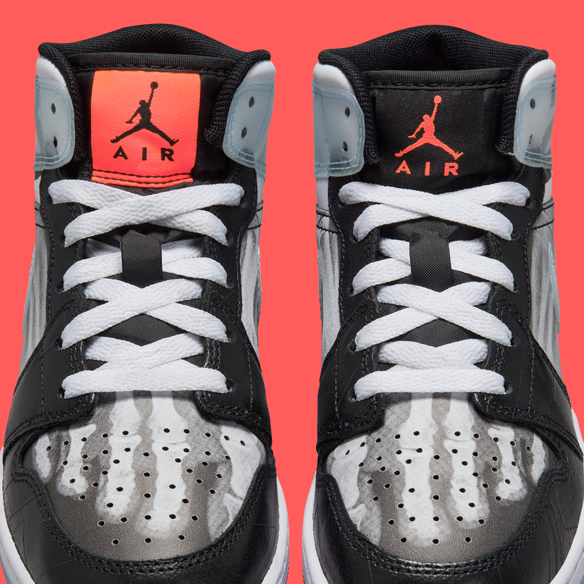 Ostensibly inspired by Michael Jordan’s foot injury in 1986, this Air Jordan 1 Mid features images of a foot x-ray laid onto the toe-box, mid-foot, and ankle collar of the sneaker. Images of a foot skeleton appears on the outsole through the translucent bottoms and again on the insole above “Even the best get hurt” messaging.