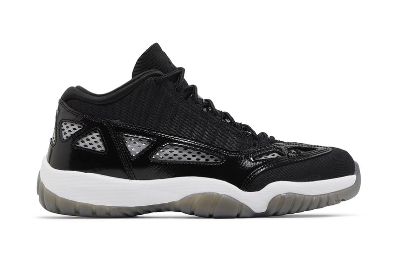 Arriving in a classic and simple black and white color scheme, the AJ11 Low IE is constructed with a mostly all-black upper with a mesh and tumbled leather base. Patent leather overlays give the shoe a glossy finish, while the white mesh underlay is added for breathability, matching the tonal Jumpman logos. The shoe sits atop a white midsole and black semi-translucent outsole to round out the design.