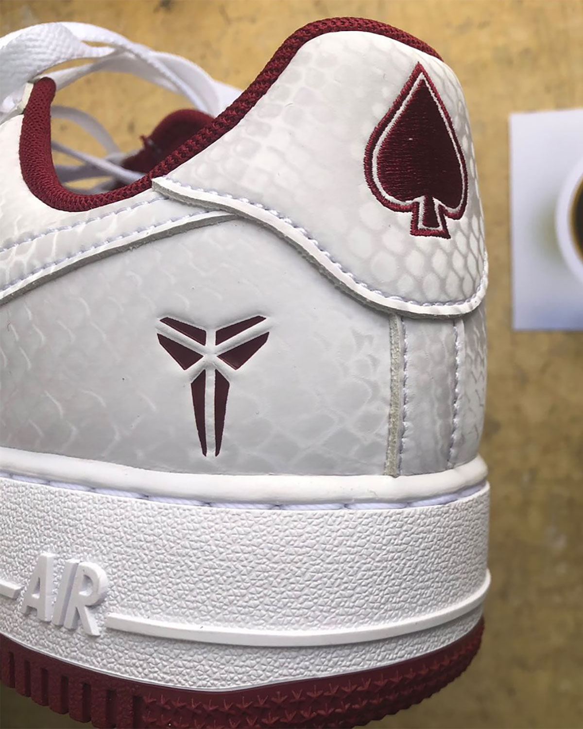 Kobe Bryant famously went prep-to-pro in 1996, forgoing a collegiate stint to go directly to the NBA. Before being drafted by the Charlotte Hornets and being traded to the Lakers on that fateful night, Kobe wore a white and burgundy red for his Lower Merion Aces athletic program. This exact color scheme, which inspired the Kobe 5s, will serve as the base colors for the Air Force 1.
