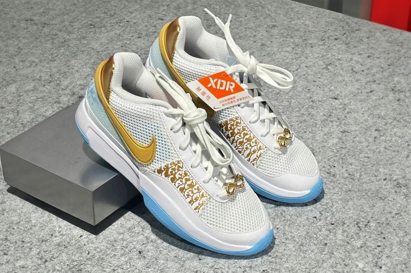 Ja Morant and Nike continue to expand its lineup for his first signature shoe, this time as a part of the upcoming Lunar New Year festivities. The Nike Ja 1 recently surfaced on Instagram, giving fans a first look at what to expect in the new year. The shoe's color scheme consists of white, game royal and pure platinum and is constructed in a mixture of material that includes mesh, leather and ripstop material. Metallic gold accents the Swooshes, lace dubrae,s heel tab and midfoot to pay homage to the holiday. Morant's signature "TMT" logo is seen in blue and on the lateral heel under the ripstop section. THe same cool blue tone hints at the tongue label as well as under the layer of the white mesh upper. The shoe sits atop a white and blue Air Zoom-cushioned midsole and blue rubber outsole to round out the desing.Look out for the Nike Ja 1 "Chinese New Year" arriving on January 22, 2024 at select retailers and online at Nike for $140 USD.Click here to view full gallery at Hypebeast