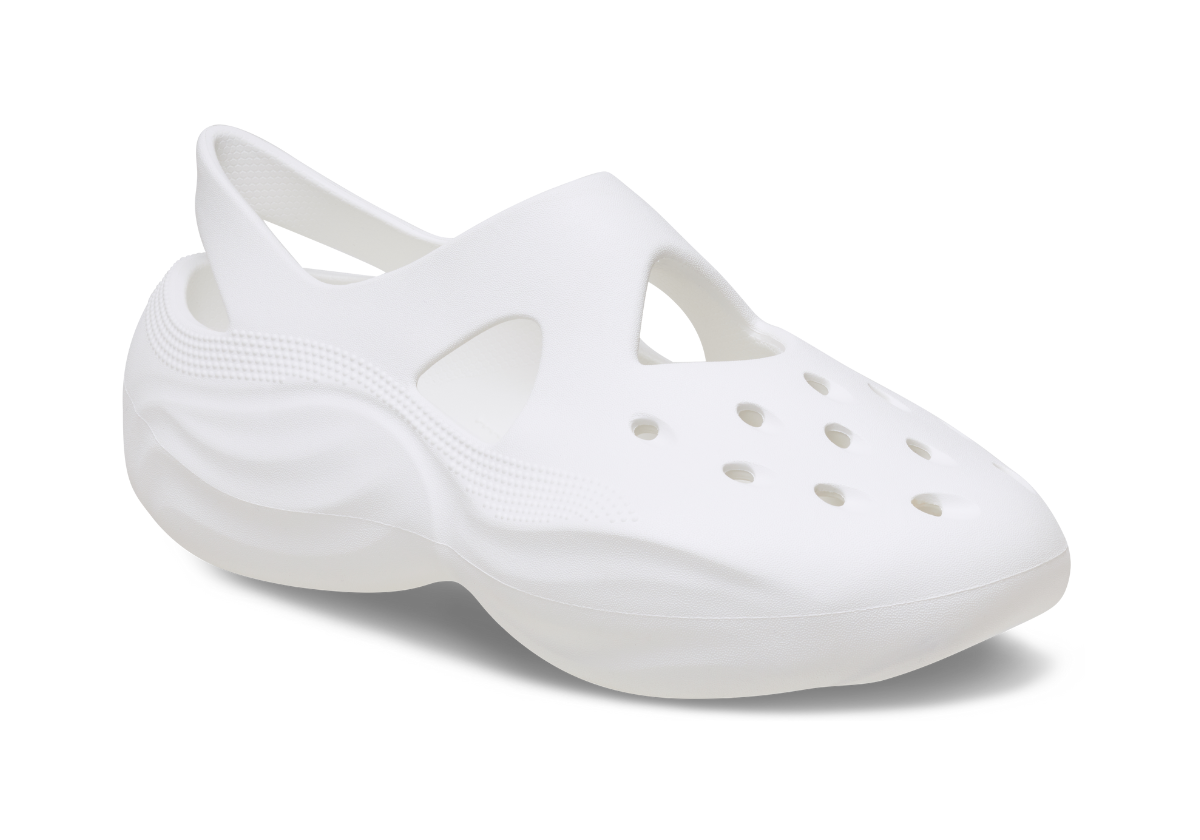 Here we have an all-new model called the Crocs Diffuser; a not-so-subtle reinterpretation of the YEEZY Foam Runner. The shoe is said to be inspired by the aerodynamics of Bugatti cars, complete with toe box perforations, triangular cutouts, and a uniform heel enclosure. Texturally, the Diffuser features embossed dots on both sides and wavy traction patterns on the footbed and outsole. Crocs decides on an all-white colorway for the model’s debut, but more options are expected to land in 2025.