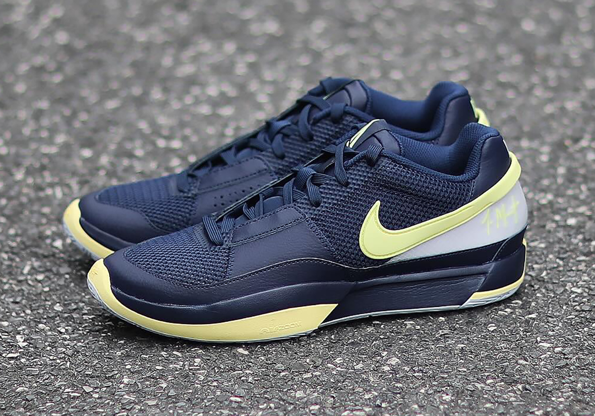 Likely one of the last pairs in the Ja 1 cycle is this navy/yellow pair ostensibly inspired by his Murray State uniform. There are no clear markings that officially bond these to the mid-major school and the shade of “Light Laser Orange” is a bit lighter than what you see on their threads, but the collegiate connection seems reasonable given the upcoming NCAA Tournament.