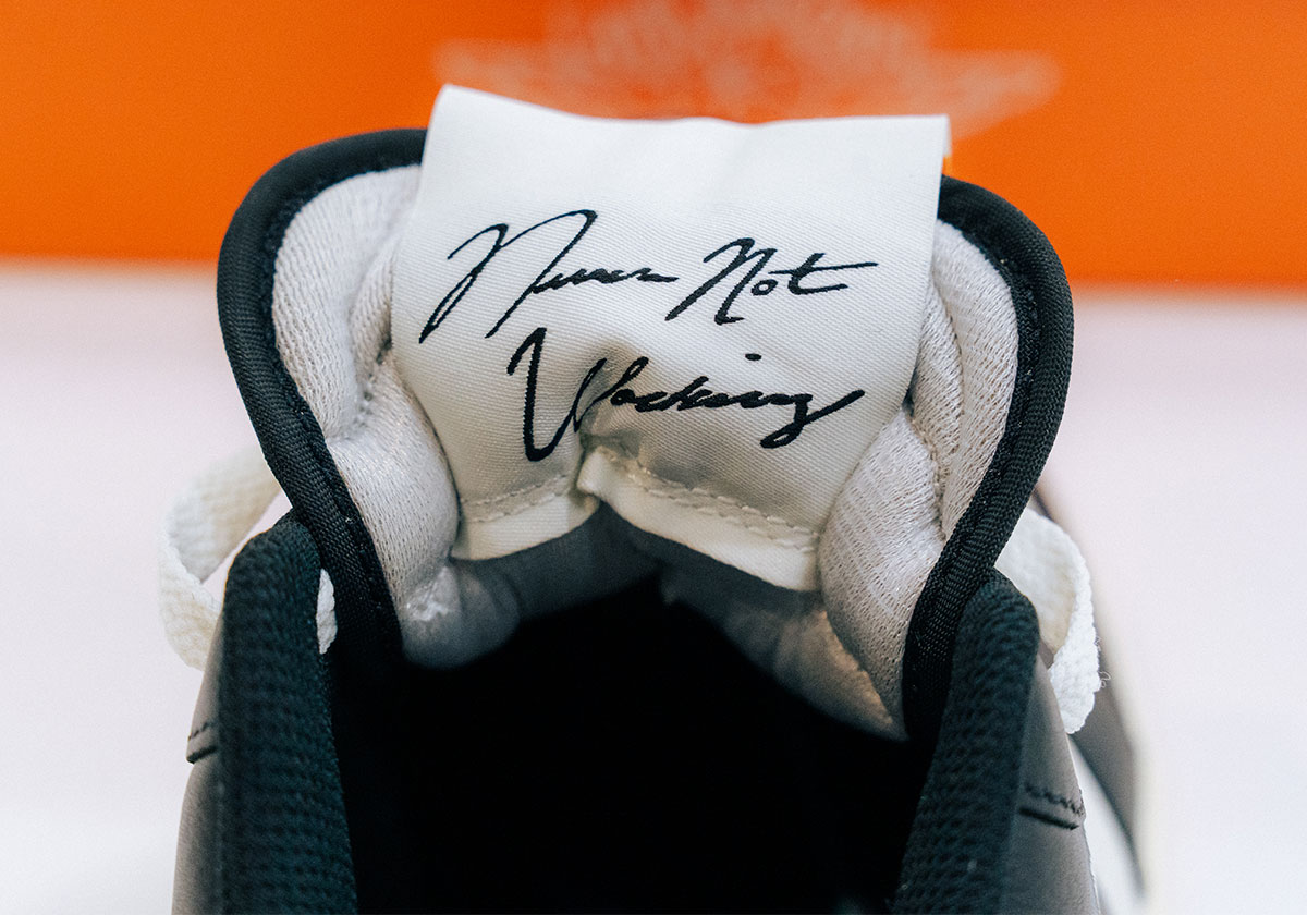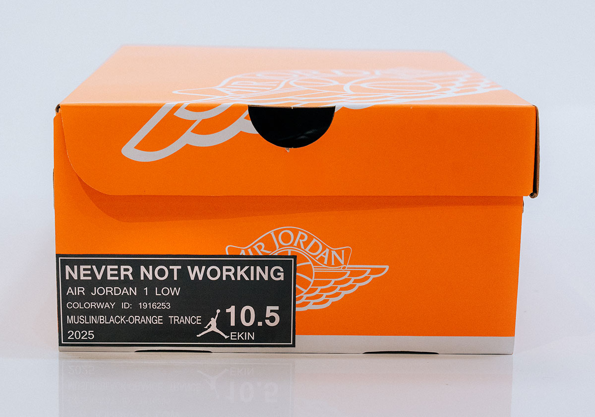 Limited to just 200 individually numbered pairs, the shoe stands as one of the most exclusive releases in Nike history. Design highlights include “Never Not Working” scripted on the tongue in the style of Michael Jordan’s signature, dusk-to-dawn-inspired color blocking that symbolizes the EKIN work ethic, and EKIN Orange accents nodding to faded Nike shoeboxes. Additional details—such as asymmetrical heel embroidery, historical lace aglet callouts, and a Jumpman Skyline sock liner graphic—ground the design in both Jordan and EKIN history. These will not release to the public and will be gifted exclusively to EKINs.