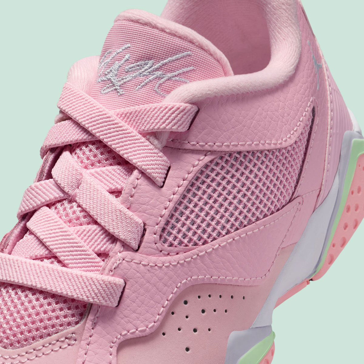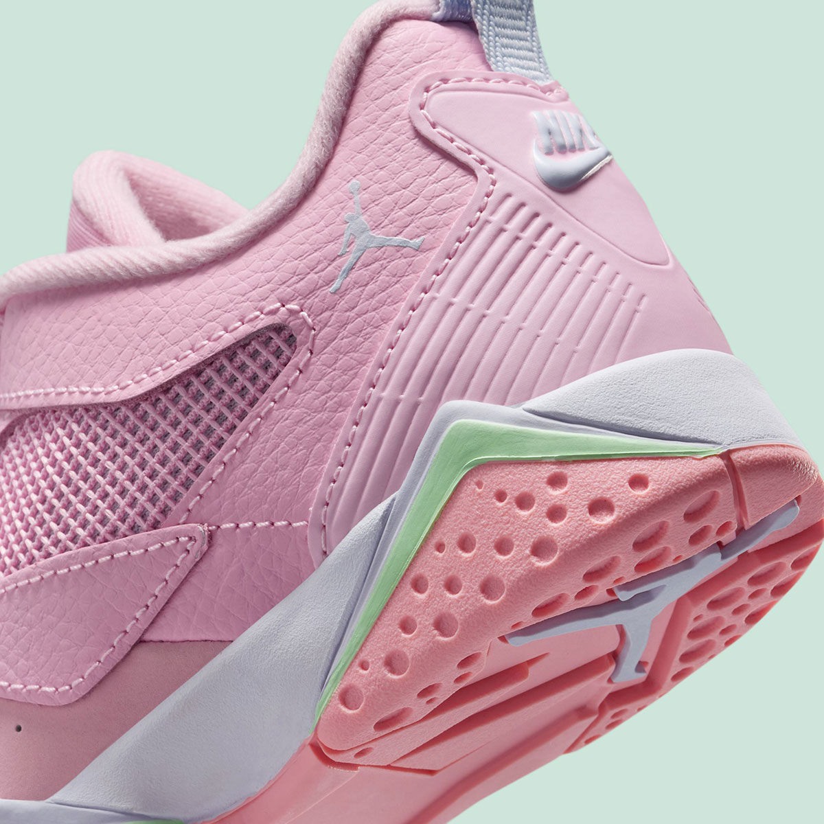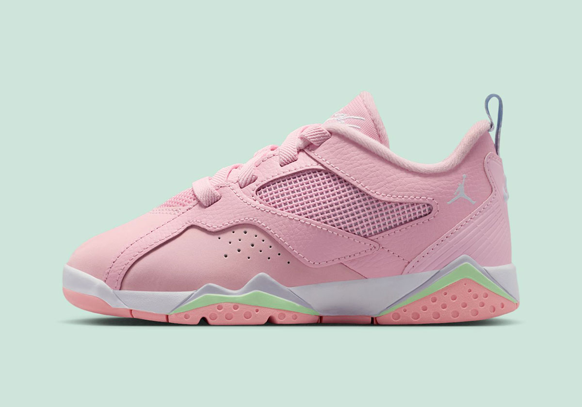 The design pulls directly from those classic heart-shaped candies stamped with sweet messages you probably gave to a grade school crush. A soft Medium Soft Pink upper sets the tone, while Vapor Green and Half Blue accents appear underfoot. The Jordan MVP 92 itself is a new low-top takedown silhouette reminiscent of the Air Jordan 7, borrowing its midsole tooling for a familiar foundation. Inside, custom insoles feature heart-candy graphics with Jumpman logos and playful messages.