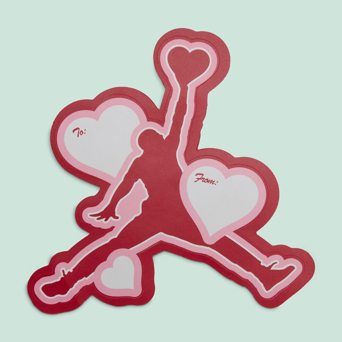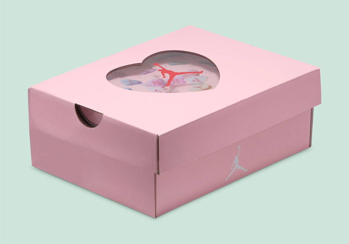 Jordan Brand leans fully into the concept with themed packaging as well. The wrapping paper is printed with heart candies, the box features a heart-shaped cutout on top, and a Jumpman-shaped “to/from” sticker is included, making these especially gift-ready for the holiday.