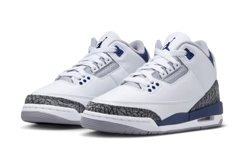 Following the coveted releases of the Air Jordan XI Gratitude and the Air Jordan 3 Fear, Jordan Brand is reconceptualizing another classic in a new colorway: the Air Jordan 3 Midnight Navy. The new model maintains the iconic Air Jordan 3’s original clean silhouette, accentuated by an eye-catching elephant print texture on the uppers while introducing new color accents in Midnight Blue.The tried and true Air Jordan 3 celebrated its 35th anniversary this past year and to honor the cultural impact of the brand and fan-favorite sneaker models, the sneaker giant unveiled a series of reimagined designs. Each informed by their retro predecessors, these reinvented releases pay homage to Jordan Brand’s past while looking ahead to what’s to come.The latest AJ3’s updated design boasts both genuine and synthetic leather for durable wear, while a thick rubber outsole provides dependable stability and traction. A foam midsole with an Air-Sole unit in the heel and forefoot ensures comfort-maximizing cushioning whether on or off the court.The Air Jordan 3 “Midnight Navy” retails for $200 USD for adults and is set to drop on the SNKRS app on December 16th. App users will be the first to know when the sneaker goes live. See below for full pricing.Adult: $200Big Kid’s: $150Little Kid’s: $90Baby: $75Click here to view full gallery at Hypebeast