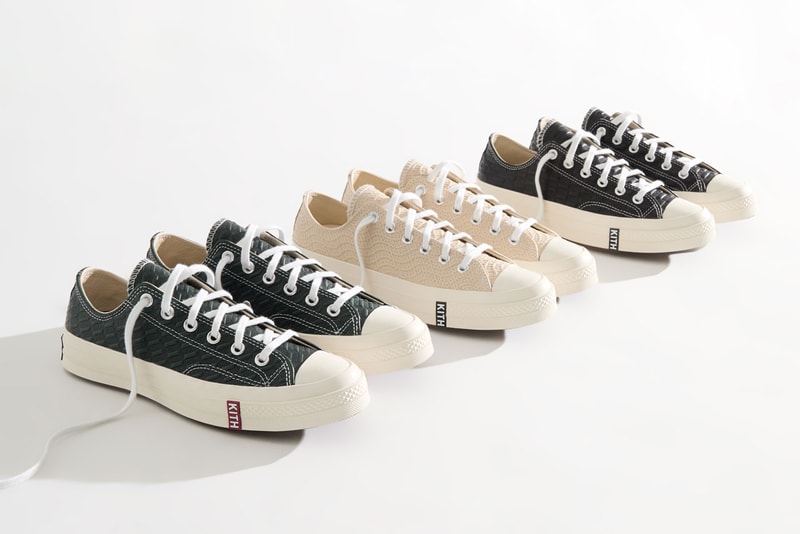 Name: Kith x Converse Chuck Taylor All Star 70 OxColorways: Black; Beige; Green ScarabRelease Date: August 23Where to Buy: KithKith and Converse are no strangers to crafting a clean, cohesive collaboration. Having linked up on a handful of Converse silhouettes in the past, the duo is connecting once again to reimagine the Converse Chuck Taylor All Star 70 Ox for the first time as part of its Fall Classics 2024 line, dipping the signature sneaker in three monogrammed colorways.The Kith x Converse Chuck Taylor All Star 70 Ox lands in shades of all-black, beige and "green scarab," with each iteration covered in Kith monograms of some sort. The black iteration is engulfed in Kith's Classic Monogramming, while the green version looks somewhat three-dimensional in structure, covered in Kith's Deco Monogramming. Rounding out the trio is the beige colorway, which features all-over Kith Monogramming in a diagonal, wavy design. Both the black and green colorways surface in all-leather, while the beige comes crafted from canvas material.Take a closer look at the Kith x Converse Chuck Taylor All Star 70 Ox in the gallery above, and cop a pair as part of Kith's Fall Classics 2024 line this Friday, August 23rd at Kith's official webstore as well as Kith stores worldwide.Click here to view full gallery at Hypebeast