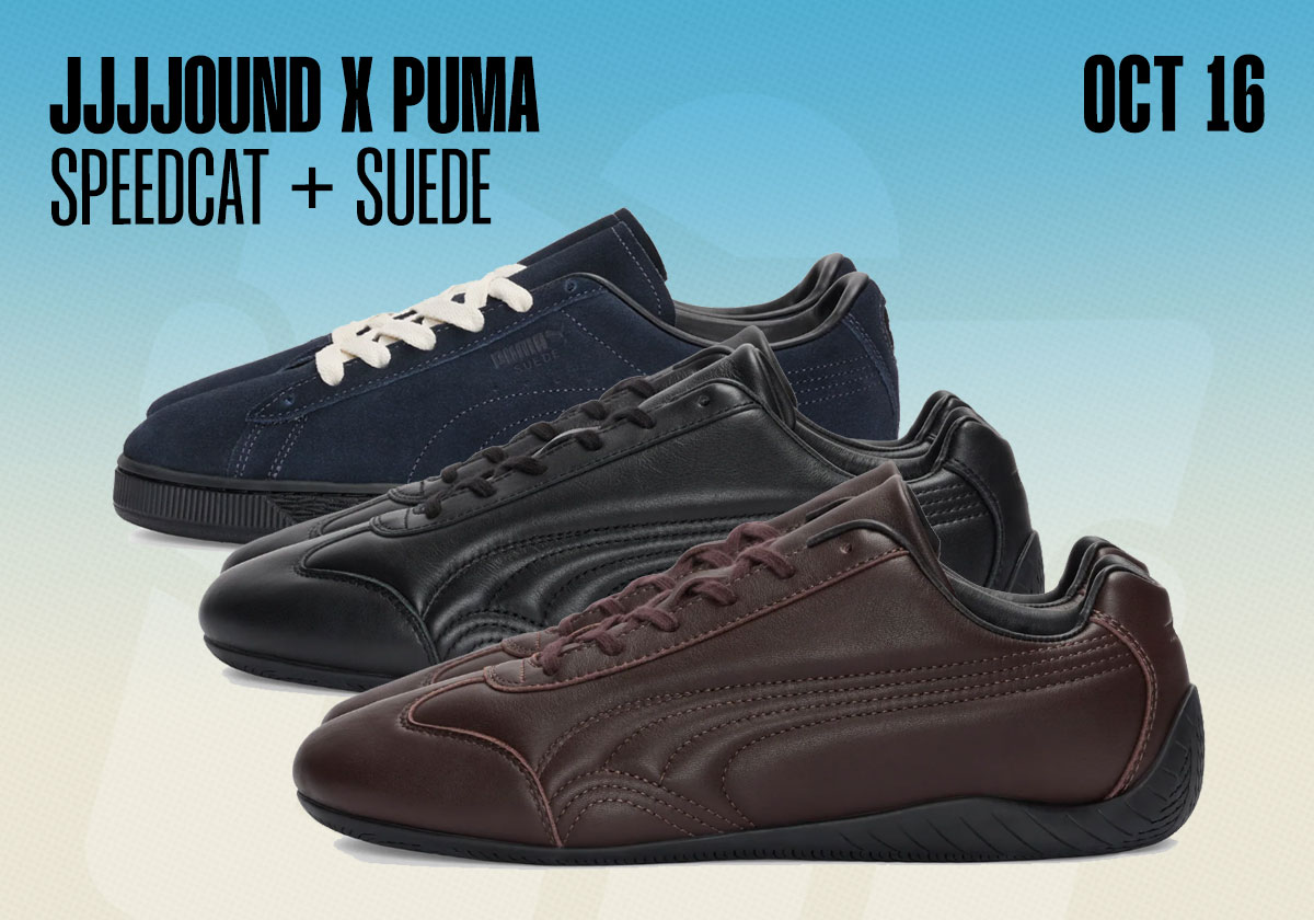 October 16th kicks off the most populous part of the week in diverse fashion; first are the Levi’s Nigo Air Force 3 and the latest JJJJound PUMA, adding premium touches to the Speedcat and Suede. The newest numbered Jordan goes olive with the Air Jordan 40 “Heritage” before the French womenswear brand sets off the Sezane New Balance 471. Lastly, the kids get some splashy looks of the latest hardwood classics via the Nike Basketball “King Of The Court” capsule.