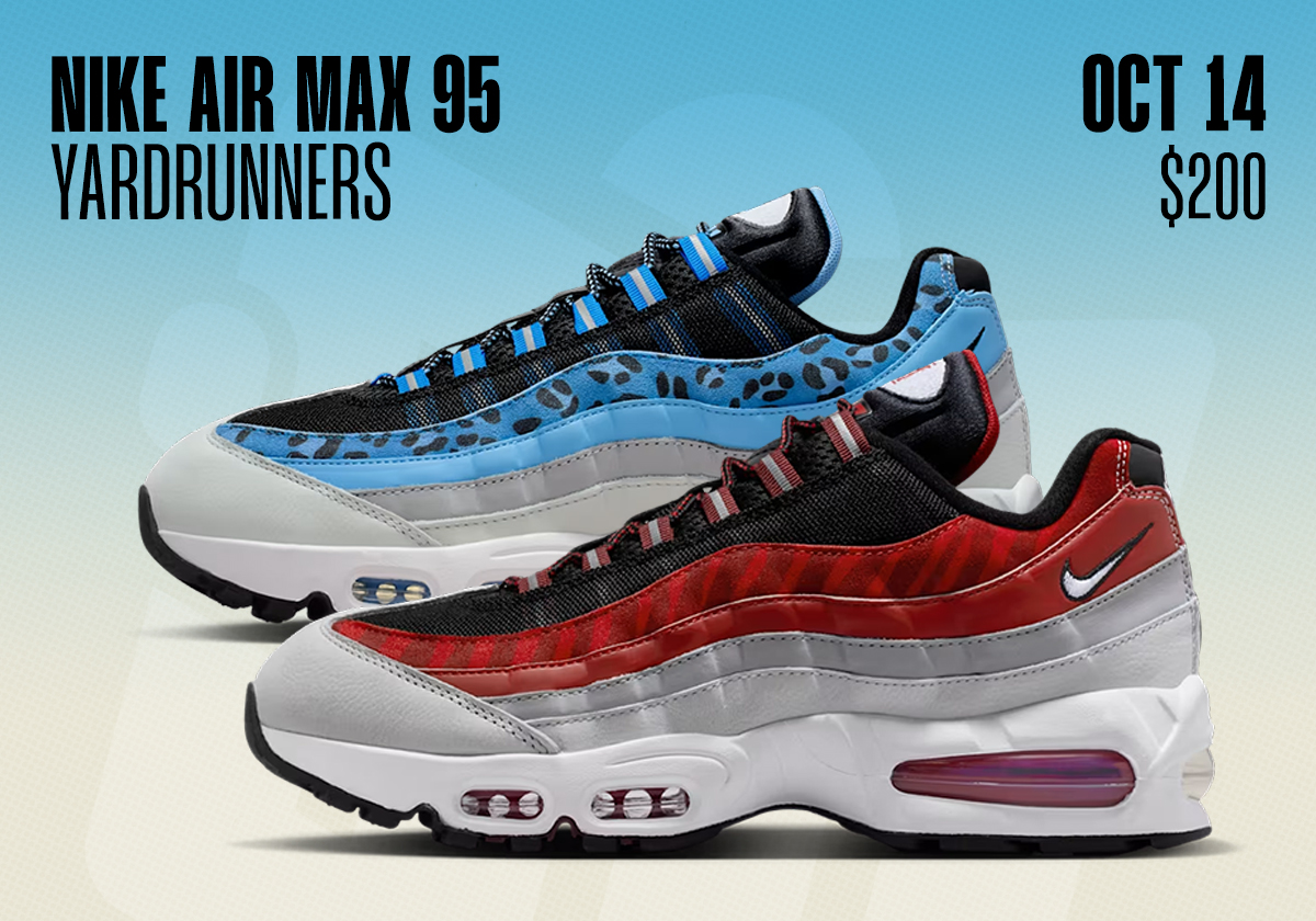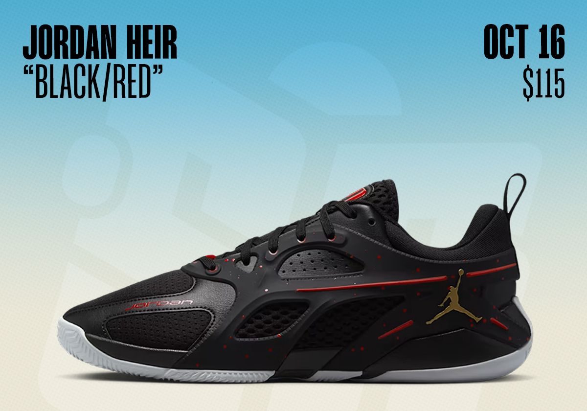 October 14th is homecoming-centric, as four pairs in the Yardrunners Air Max 95 Collection ode to the Swoosh’s stable of HBCUs. Hoopers can circle the Jordan Heir “Black/Red,” a gilded take on everlasting Bulls colors.