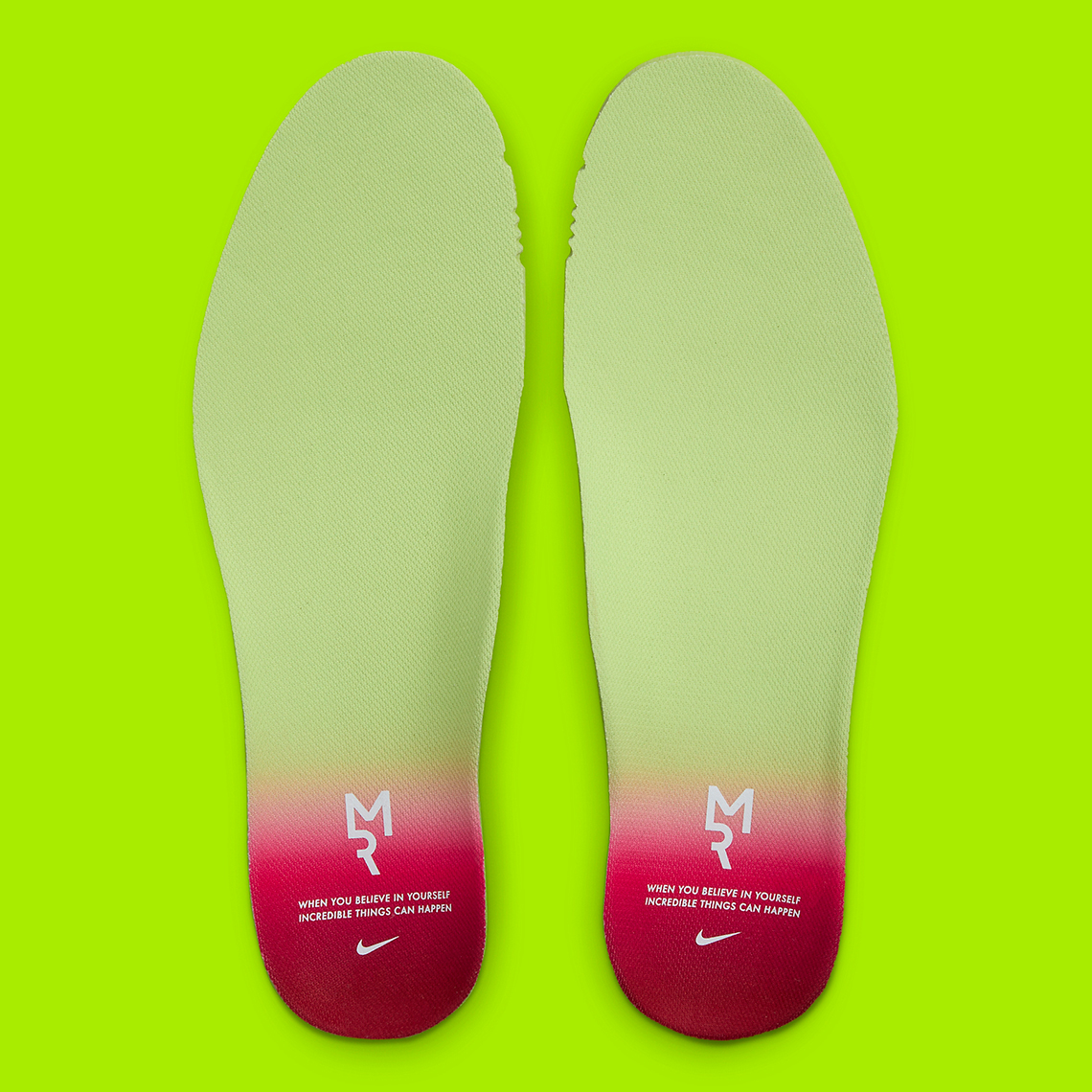 Much like the AM Plus “Marseille”, a vectorized collection of swooping lines lay claim to the ever-so-faint blue upper while seldom orange accents illuminate the heel’s swoosh. Lastly, the insoles are reserved for a splash of color as a neon volt tint transitions into a blood-red heel that bears “When you believe in yourself, incredible things can happen”.