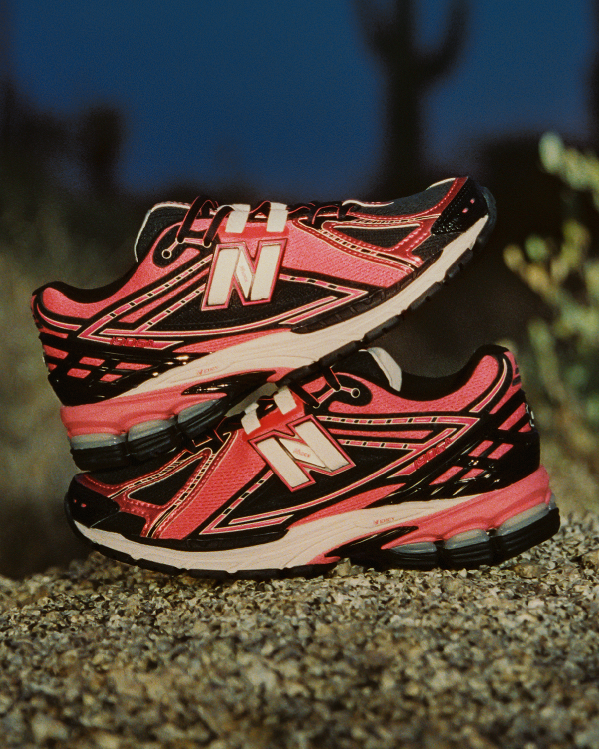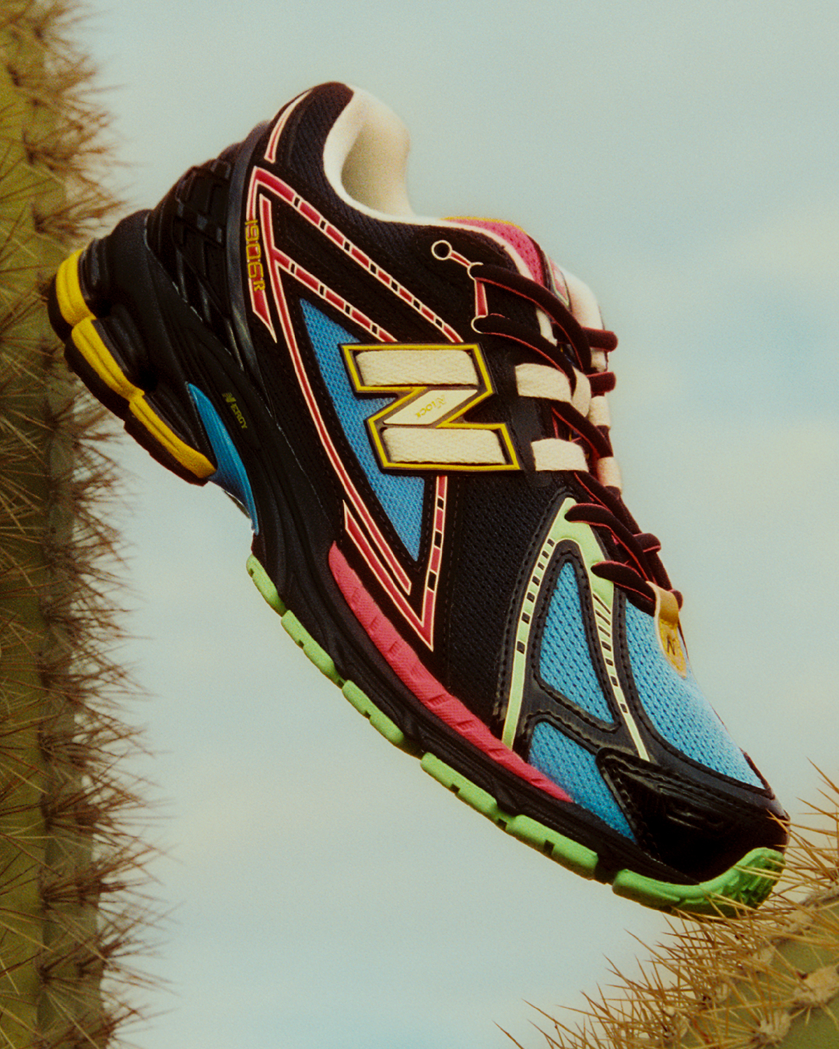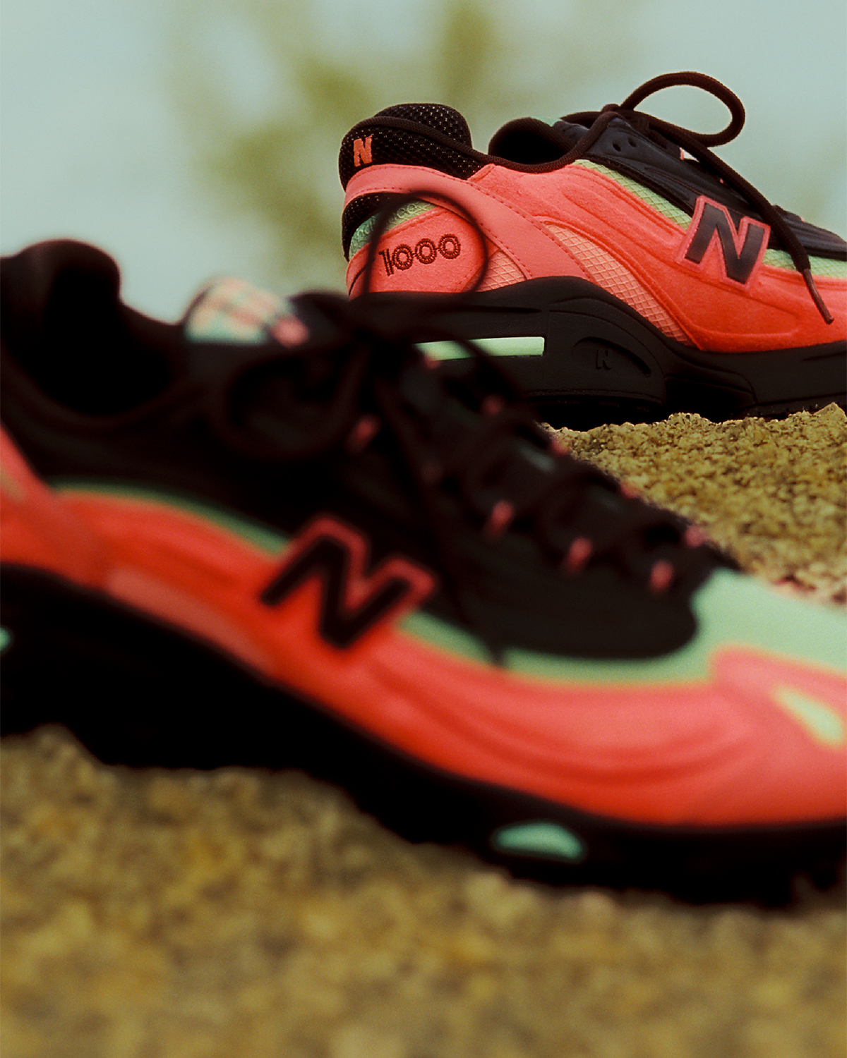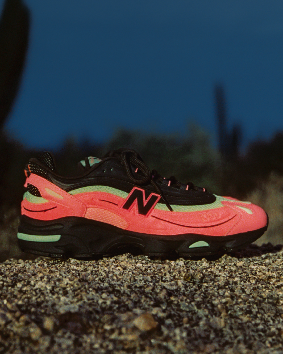 First up is the New Balance 1906R, easily one of the most ubiquitous 2000s-inspired models of the past few years. Two colorways appear in the “Desert Heat” collection, starting with a multi-color adult and GS look featuring black/blue mesh and a smattering of yellow/green/pink accents. The other 1906R will be available in women’s sizes only, opting for a more simple yet equally eye-catching red/pink/black combo. Rounding out the spread is the New Balance 1000 in a watermelon-esque black/pink/green look, crafted with suede overlays, black leather, and a ripstop base layer.