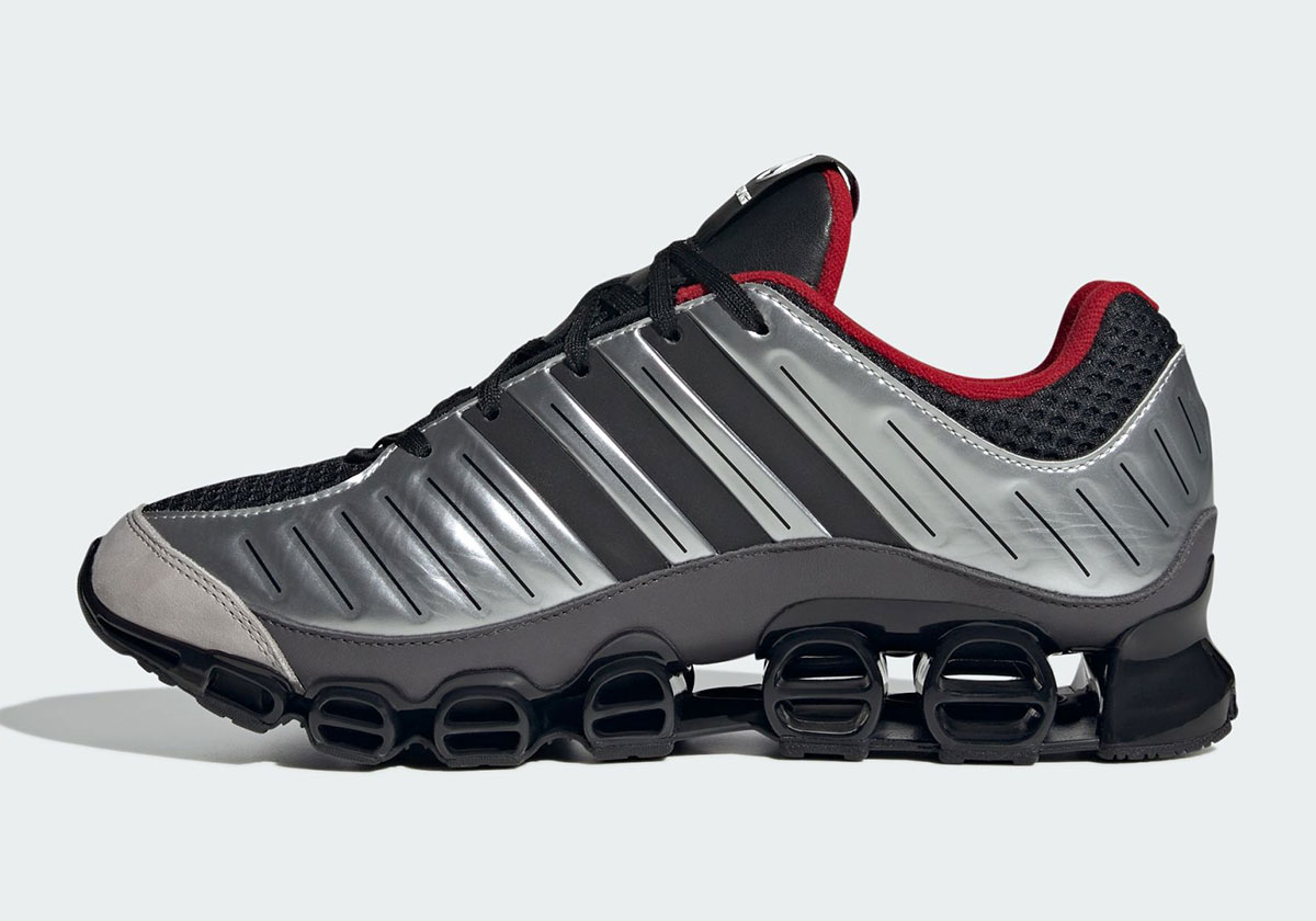 Then it’s over to the Megaride GT, a novel inclusion sporting a trending tech choice for the brand seen with the Predator Megaride in recent inline applications. The same black and red shadings act as contrast notes to a Y2K-steeped, ridged chrome body. Of course, the propulsion hardware remains the primary focus, splayed out with six bisected pods underfoot. Finally, the Three Stripes has presented the adiStar Control 5 as a defining face with milestones like the Sporty & Rich collection, but we couldn’t fault you for not recognizing it here. Though the cushioning platform remains in place, a layered, wavy mesh build replaces the traditional tech-runner overtones it wears.