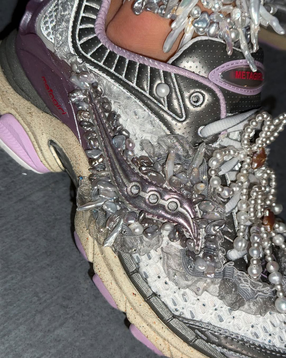 Italian designer and artist Caterina Mongillo, better known as Metagirl, checked off her first sneaker collaboration earlier this year with a Saucony ProGrid Paramount, delivering a deeply nuanced style called “Daughter Of The Moon.” Featuring frills, open mesh, and a distinctly feminine aesthetic, the shoe sold quickly upon release and can. As embellished as that public version was, it pales in comparison to this custom edition Metagirl just shared on her socials.
