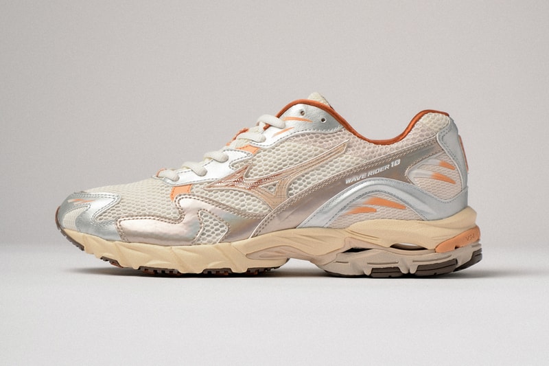 Japanese sportswear mainstay Mizuno has released an elegant new iteration of the popular Wave Rider 10. Dropping as part of the Fisherman Pack, the shoe's color scheme references the various nets, tools and materials that an angler typically uses out by the sea. Starting with the upper, the "Shifting Sand and Snow" colorway maintains key elements native to the OG model, namely a premium mesh breathable upper in cream that is complemented by wavy iridescent accents that mimic the scales of a fish. The 2000s runner also features orange details along the base, cream and salmon throughout the midsole, as well as branding on the tongue tab and heel. Having debuted back in 1998, the Wave Rider has become one of Mizuno's most cherished runners, implementing the same Wave technology from the start in the latest models. “This Wave technology was the opposite of what Nike Air was," Mizuno designer Tuan Le previously explained. "Nike Air was a big airbag that cushioned the impact of running but the Wave Plate stretches out upon impact and propels the runner forward as it returns to its regular waved shape.” The Wave Rider 10 OG "Shifting Sand and Snow" is available to purchase for £157 GBP / $198 USD at HBX.Click here to view full gallery at Hypebeast