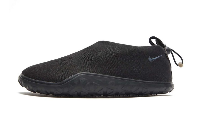 With summer fast approaching, Nike ACG introduces yet another colorway of its popular Air Moc in "Black/Anthracite."The upcoming pairs are clad in black brushed canvas with navy Swoosh embroidery on the lateral heel and ACG triangle logos across the tumbled leather heel counter. Elastic heel loops incorporate a pull-lock closure and bead details, meanwhile, insoles are etched with wavy piping details. Rounding out the minimalist look are thin rubber soles featuring triangle-pattern traction grips.Take a closer look at the Nike ACG Air Moc "Black/Anthracite" above and look for the pairs to release in the coming weeks via Nike and select retailers.Elsewhere in footwear, MSCHF sued by streetwear label over Wavy Baby sneakers. Click here to view full gallery at Hypebeast