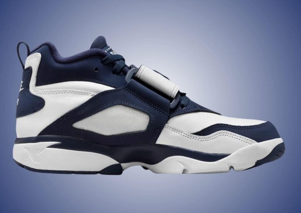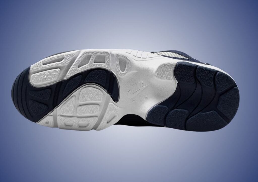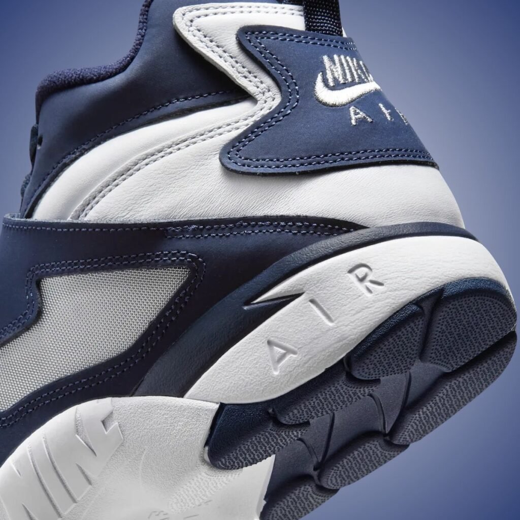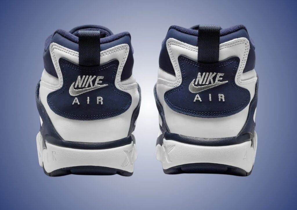 The midfoot strap returns in its original form, maintaining the lockdown system that defined the shoe’s performance capabilities. Leather overlays appear in the same locations as the 1993 version, stacked on top of the mesh base to create the layered look. An embroidered Nike Air logo sits on the heel, matching the original placement from the early 1990s release.