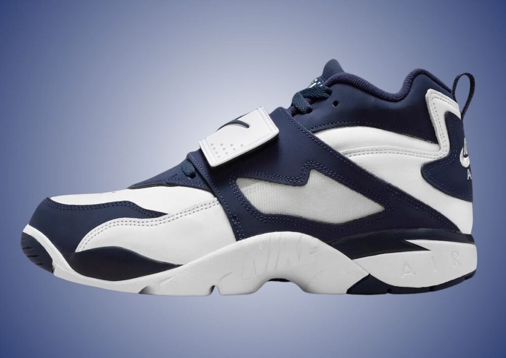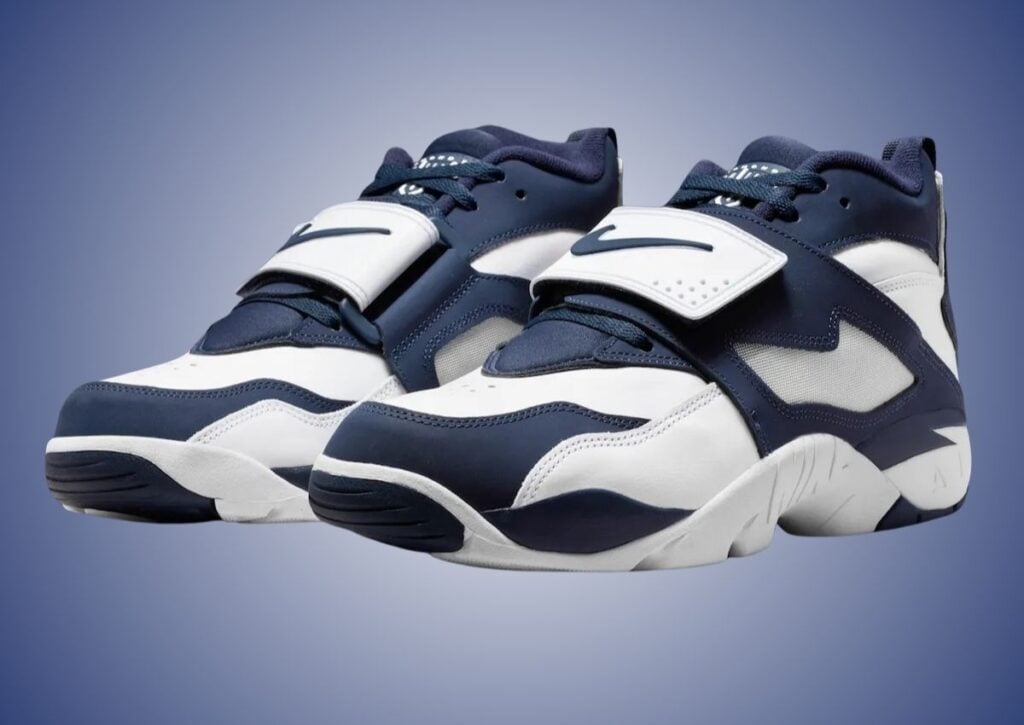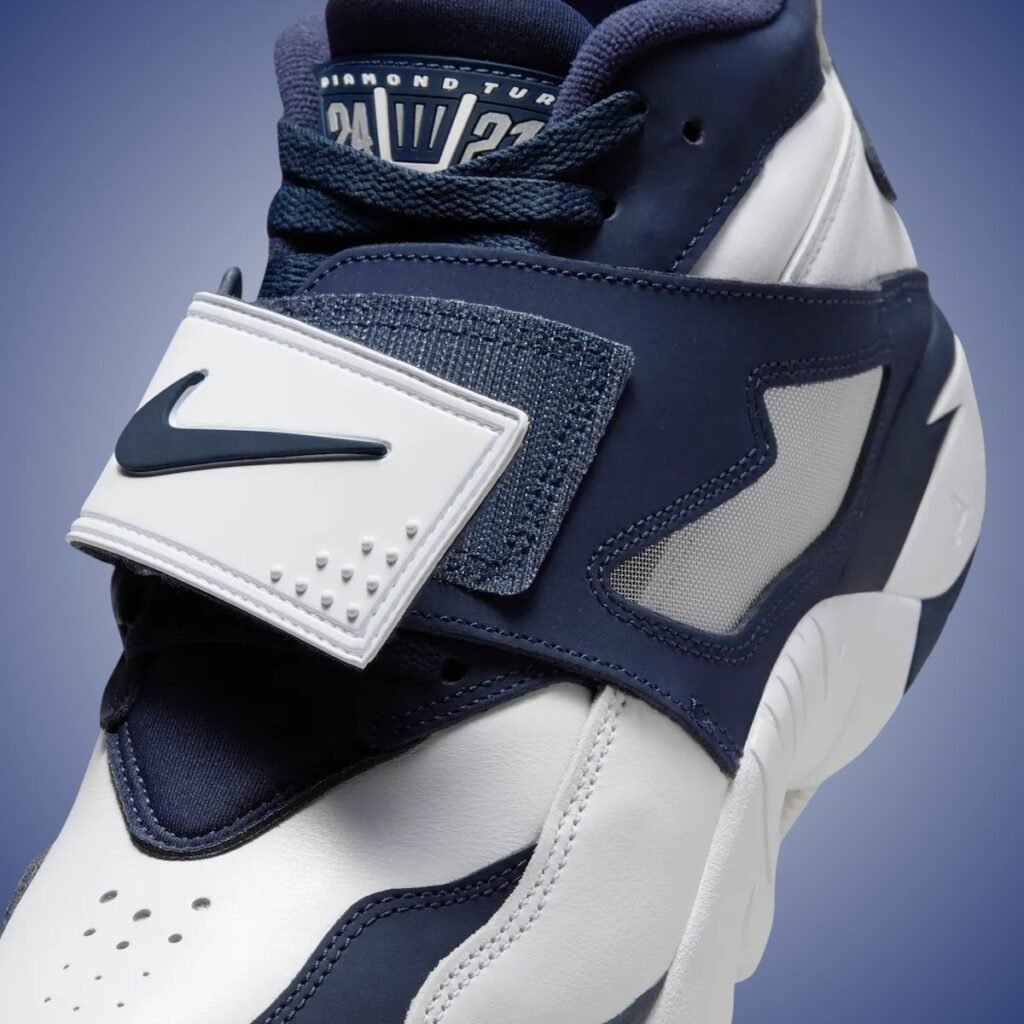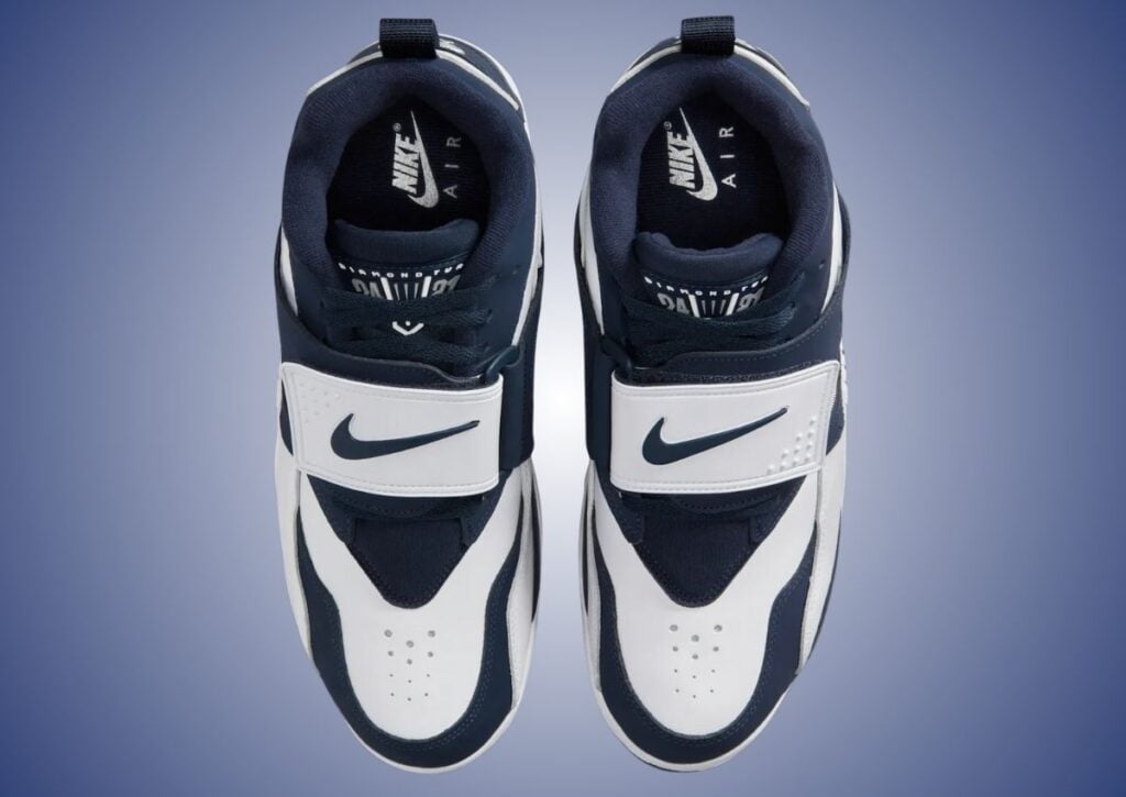 The midfoot strap returns in its original form, maintaining the lockdown system that defined the shoe’s performance capabilities. Leather overlays appear in the same locations as the 1993 version, stacked on top of the mesh base to create the layered look. An embroidered Nike Air logo sits on the heel, matching the original placement from the early 1990s release.