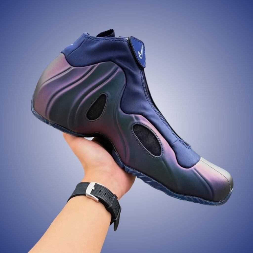The Nike Air Flightposite One “Midnight Navy” is a new colorway of the silhouette that will be released on November 21, 2025. Highlighted with an iridescent upper, the retail price is $250.